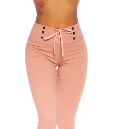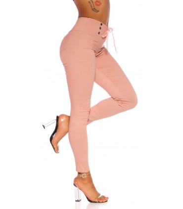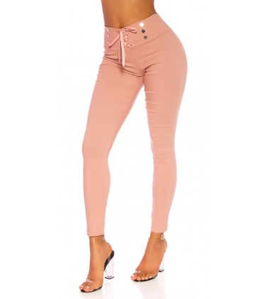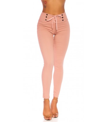 Rosa hög midja treggings med strängar [SISTA CHANSEN]