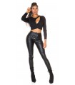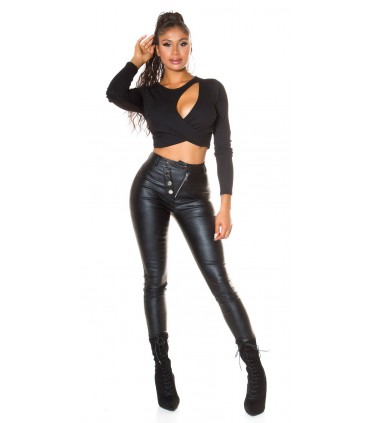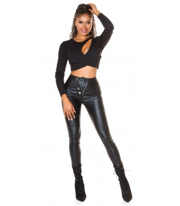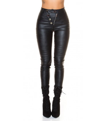 Svarta byxor med hög midja med fuskläder med knappar och dragkedja