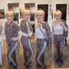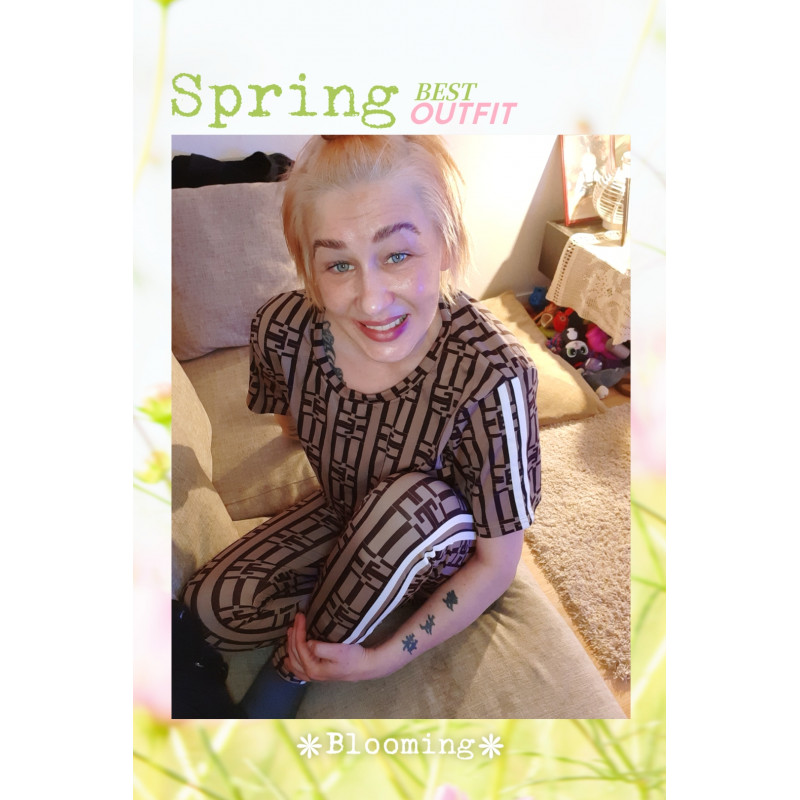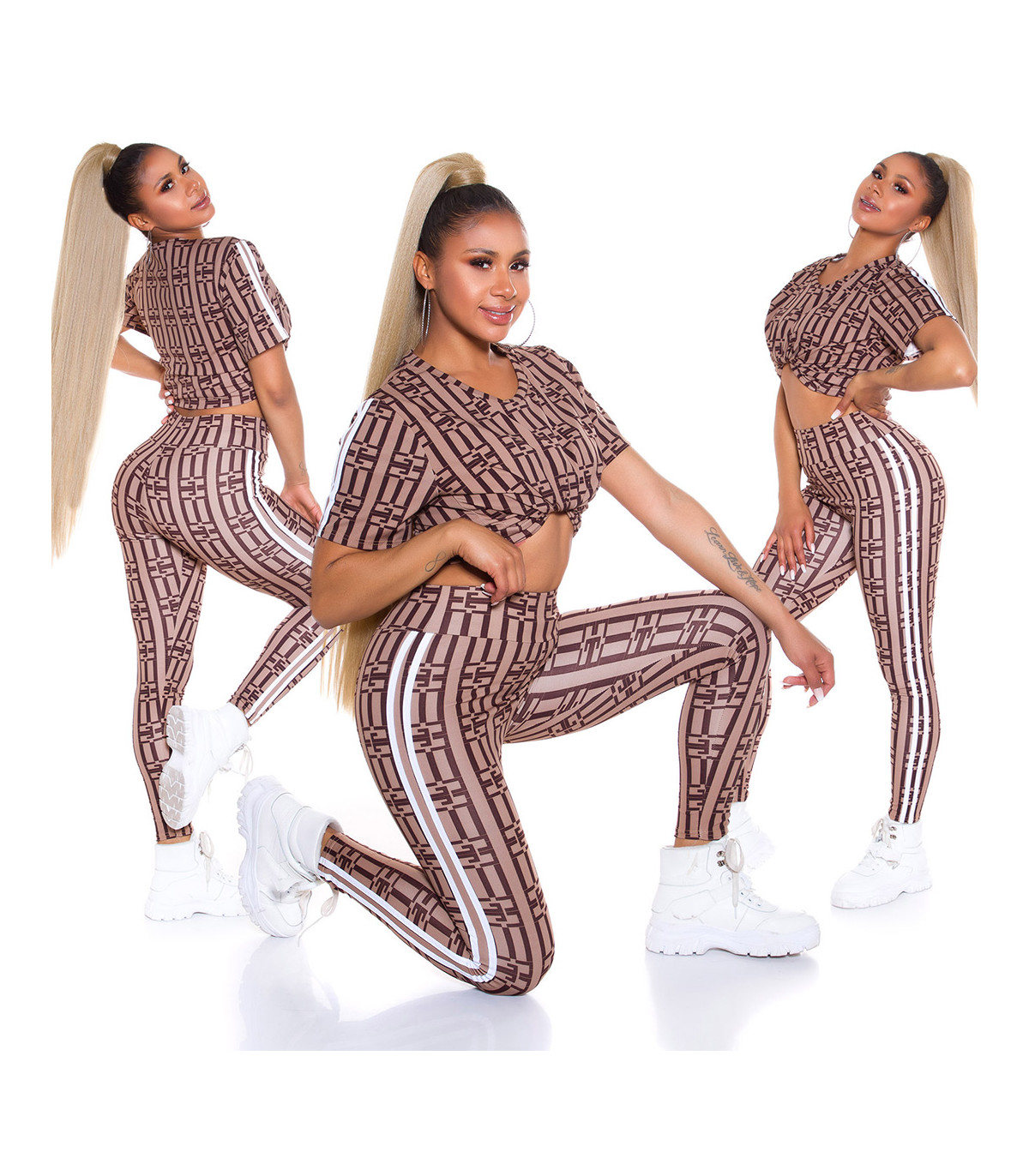 Cappuccino kortärmad tryckmönster joggare set med ränder
