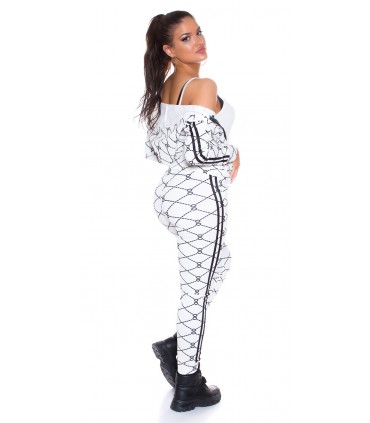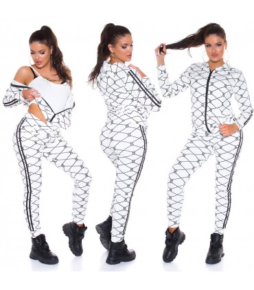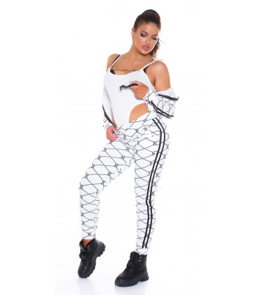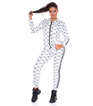 Vit utskrift mönster joggare set med dubbla ränder