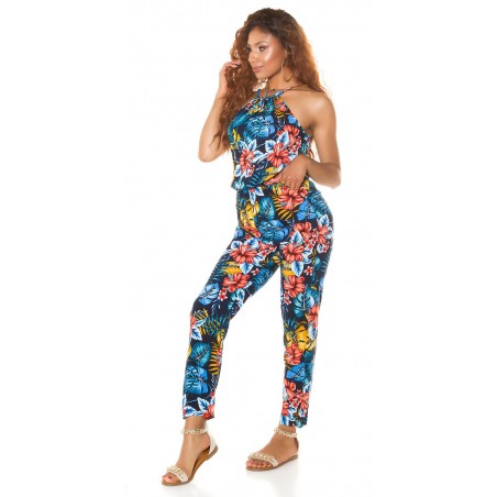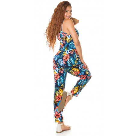 Blåblommig och bladmönstrad jumpsuit