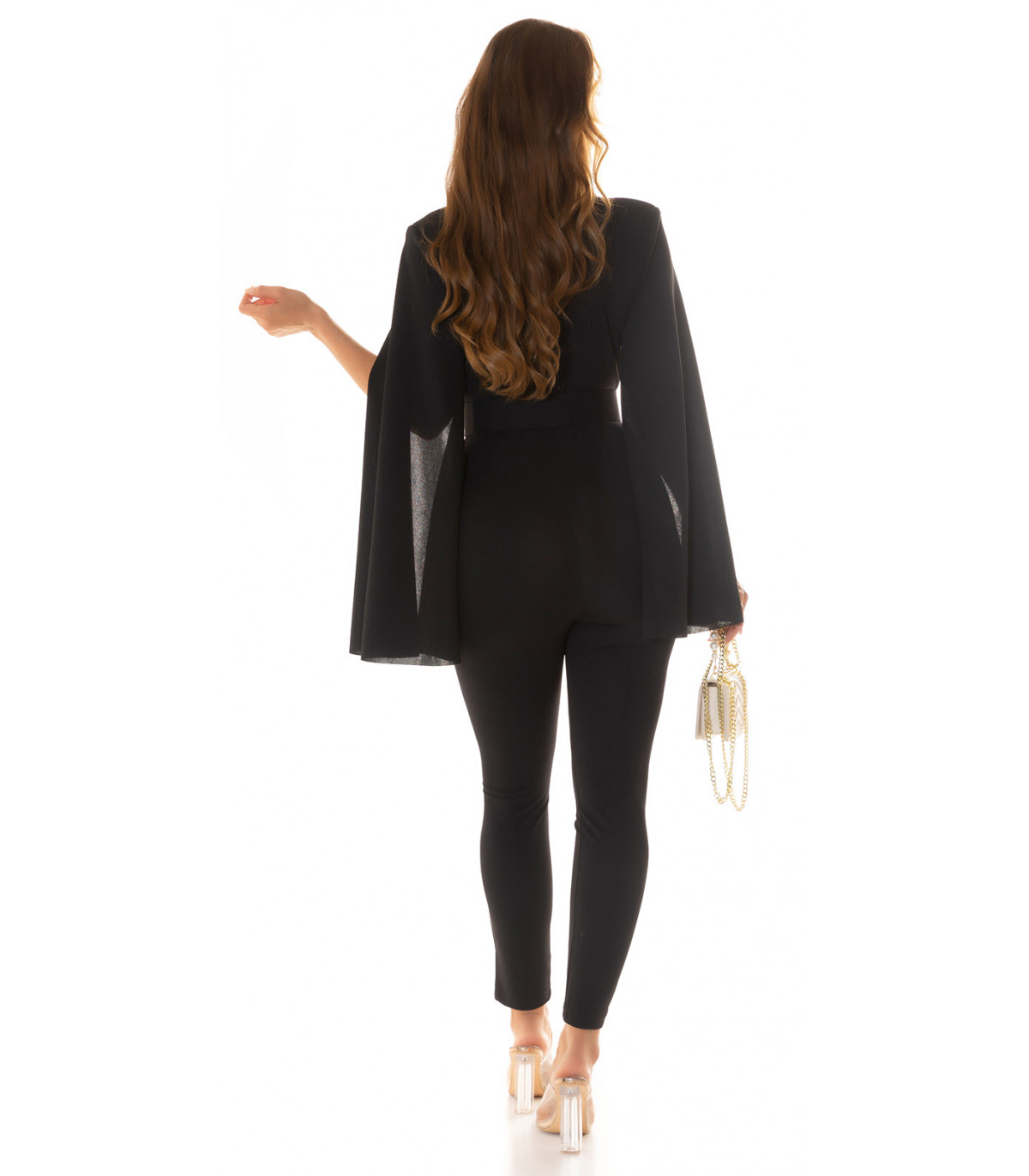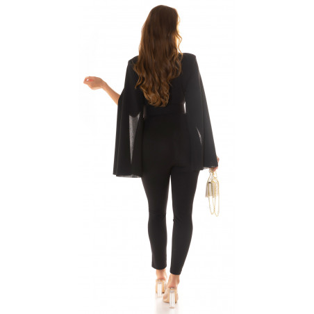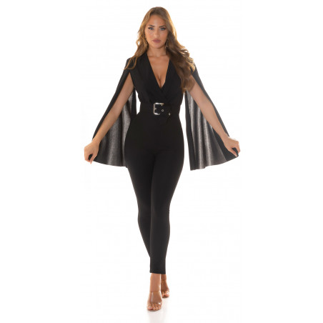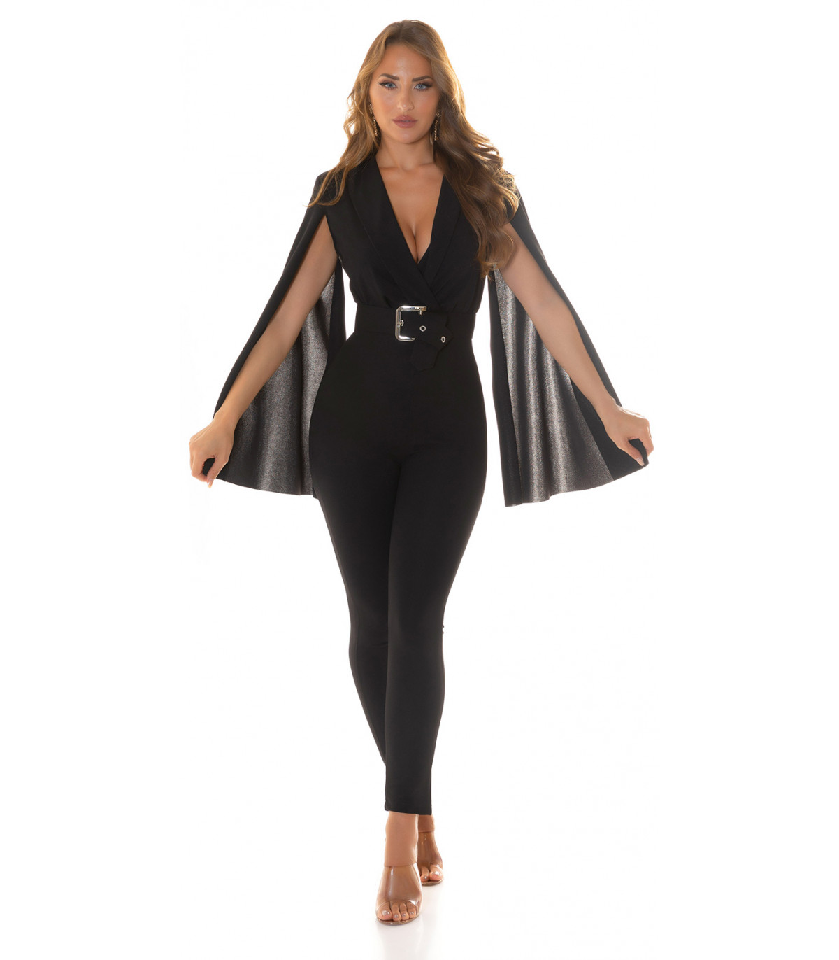 Koucla svart V-jumpsuit med öppna ärmar och bälte