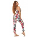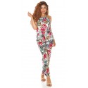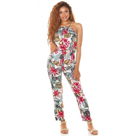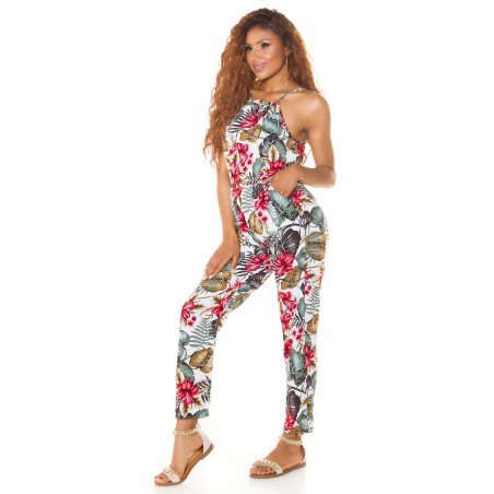Vit blommig och bladmönstrad jumpsuit