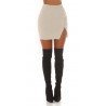 Beige ribbstickad stickad tröja med hög midja och dragkedja. Kjolen passar bäst för personer med smal midja, i förhållande till höfterna.