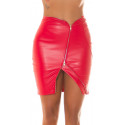 Koucla röd kjol i konstläder med tvåvägsdragkedja