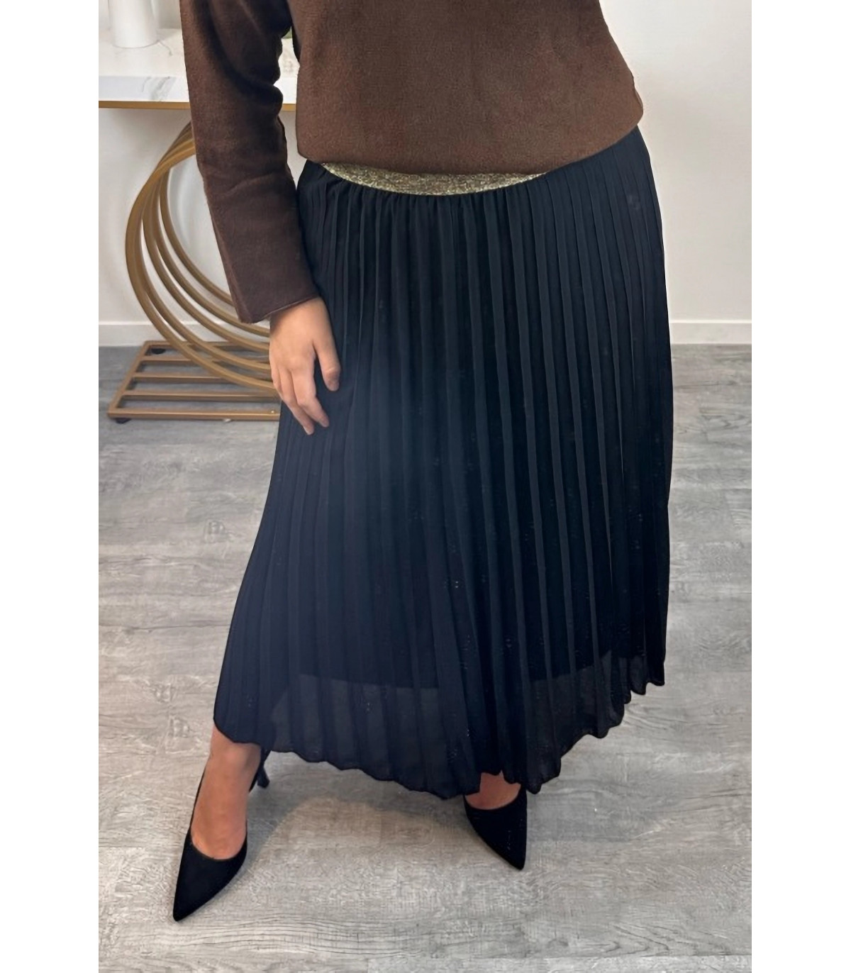 Mily musta pitkä vekkihame kultaisella vyötäröresorilla
