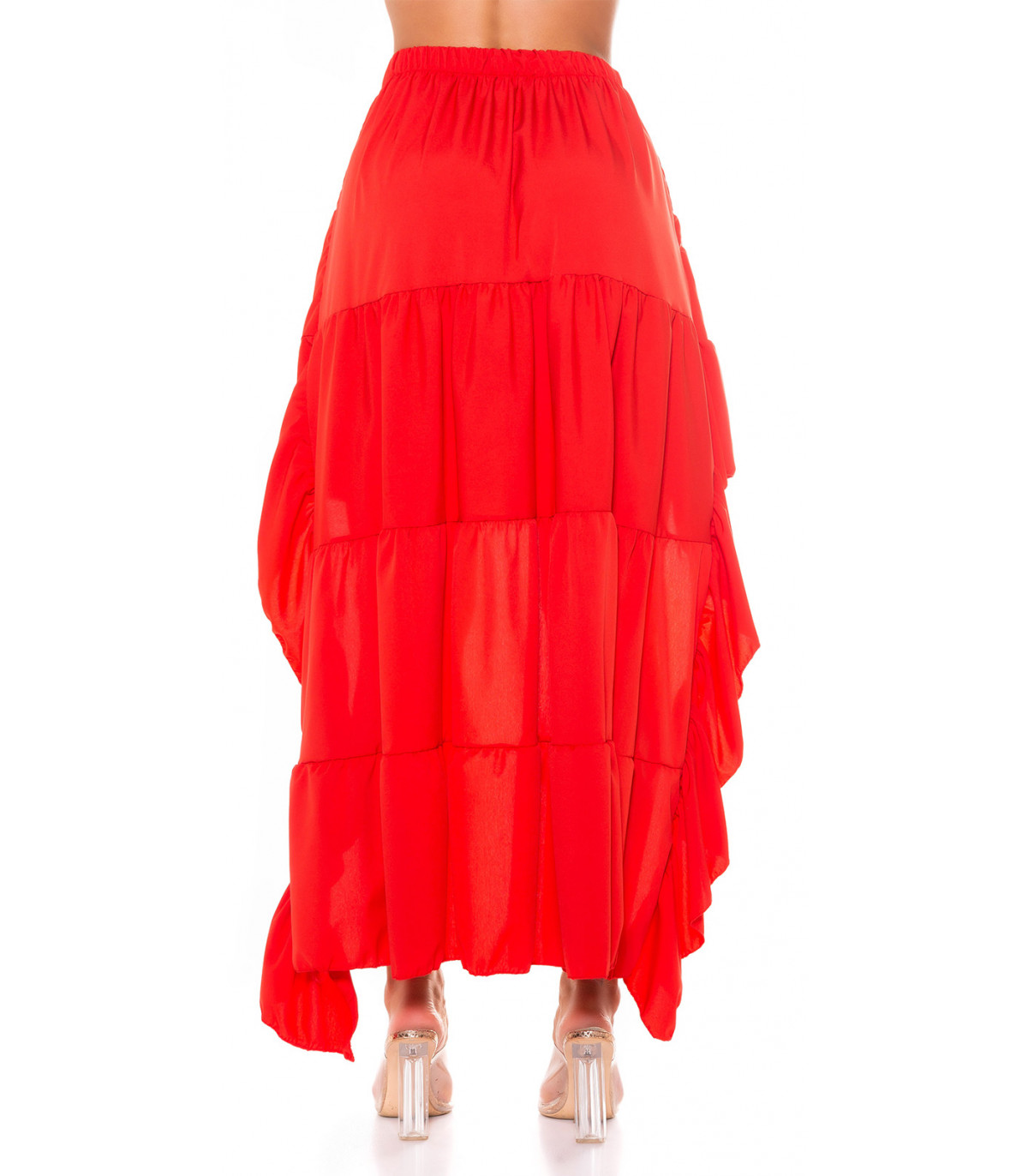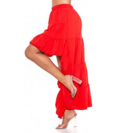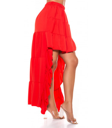 Röd hög låg latinsk kjol