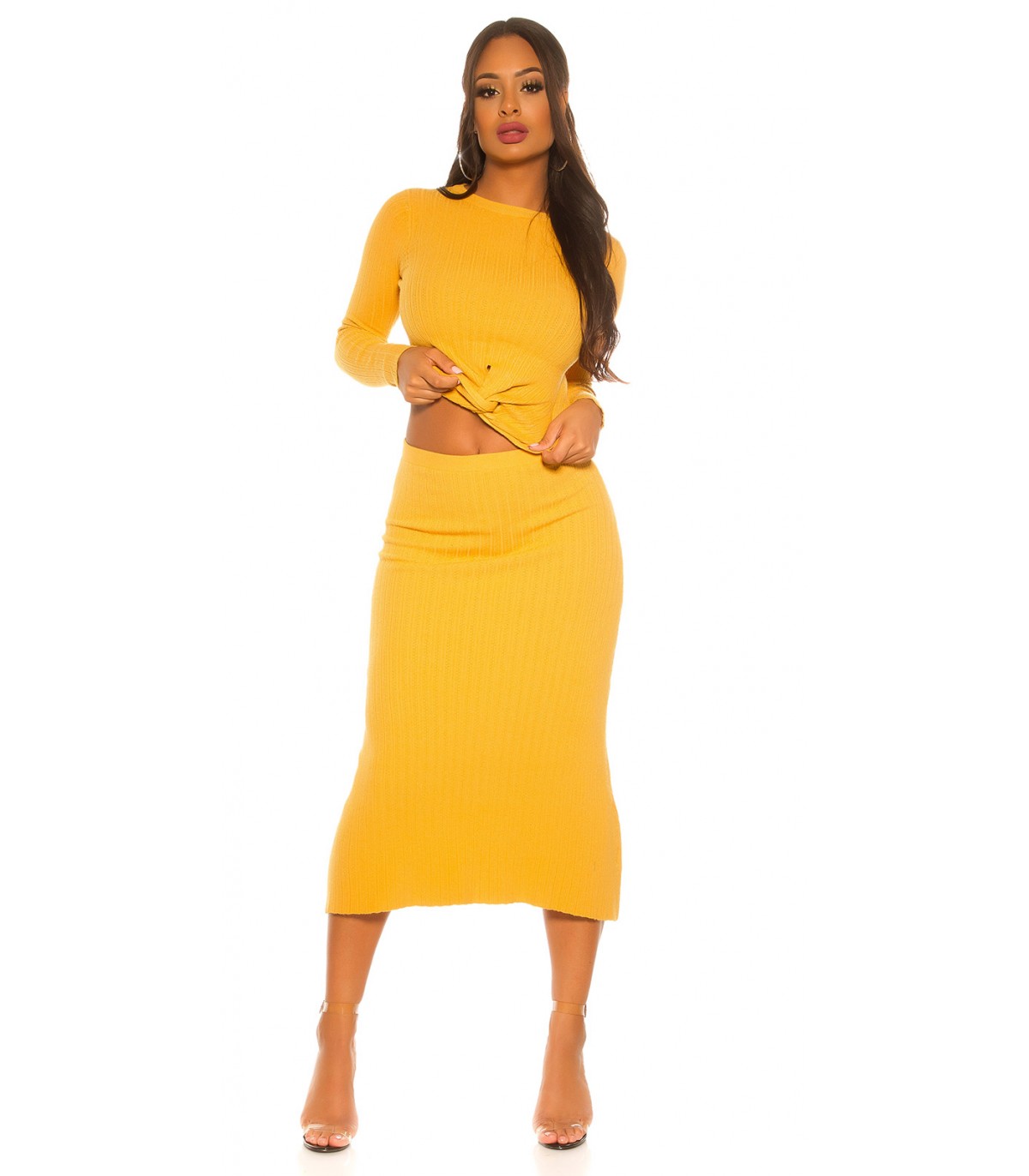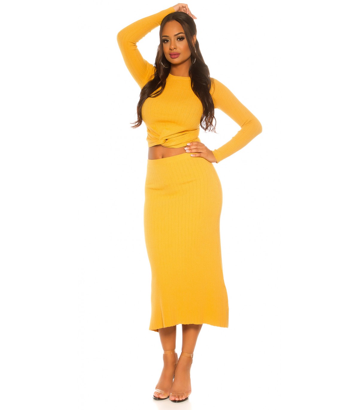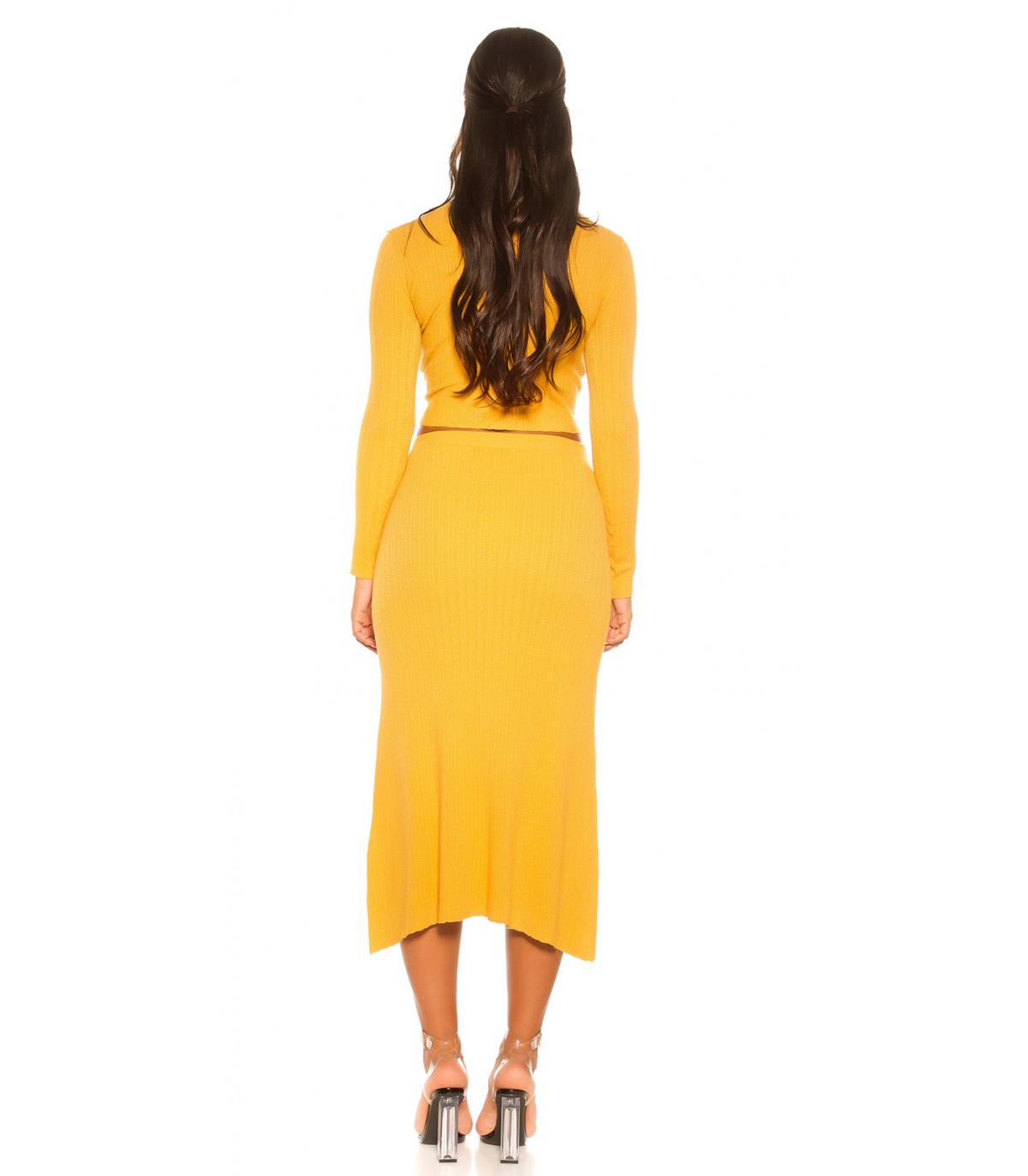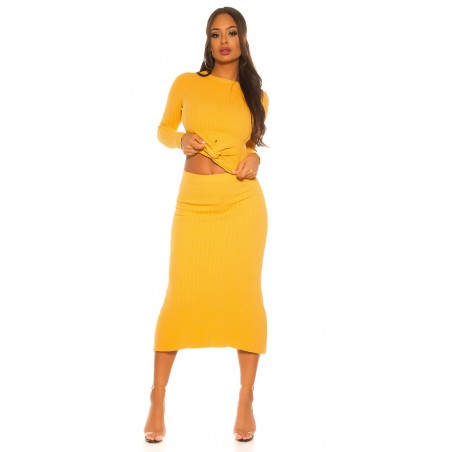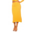 Senapsgul midi stickad kjol med hög midja