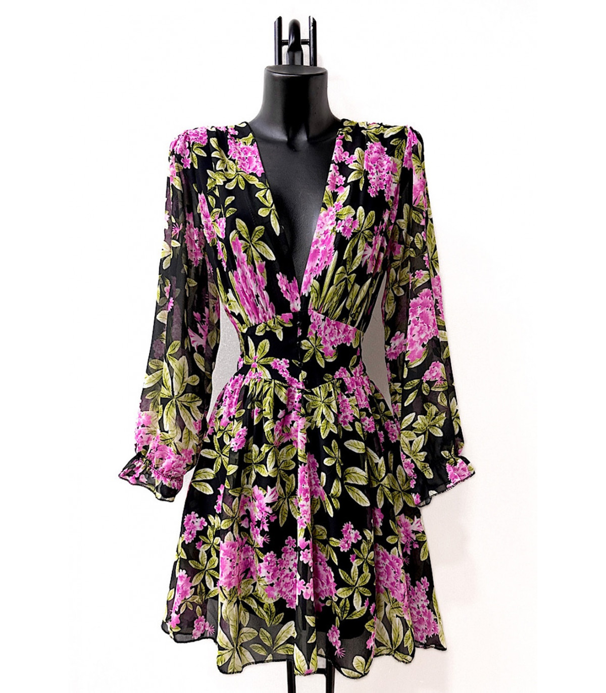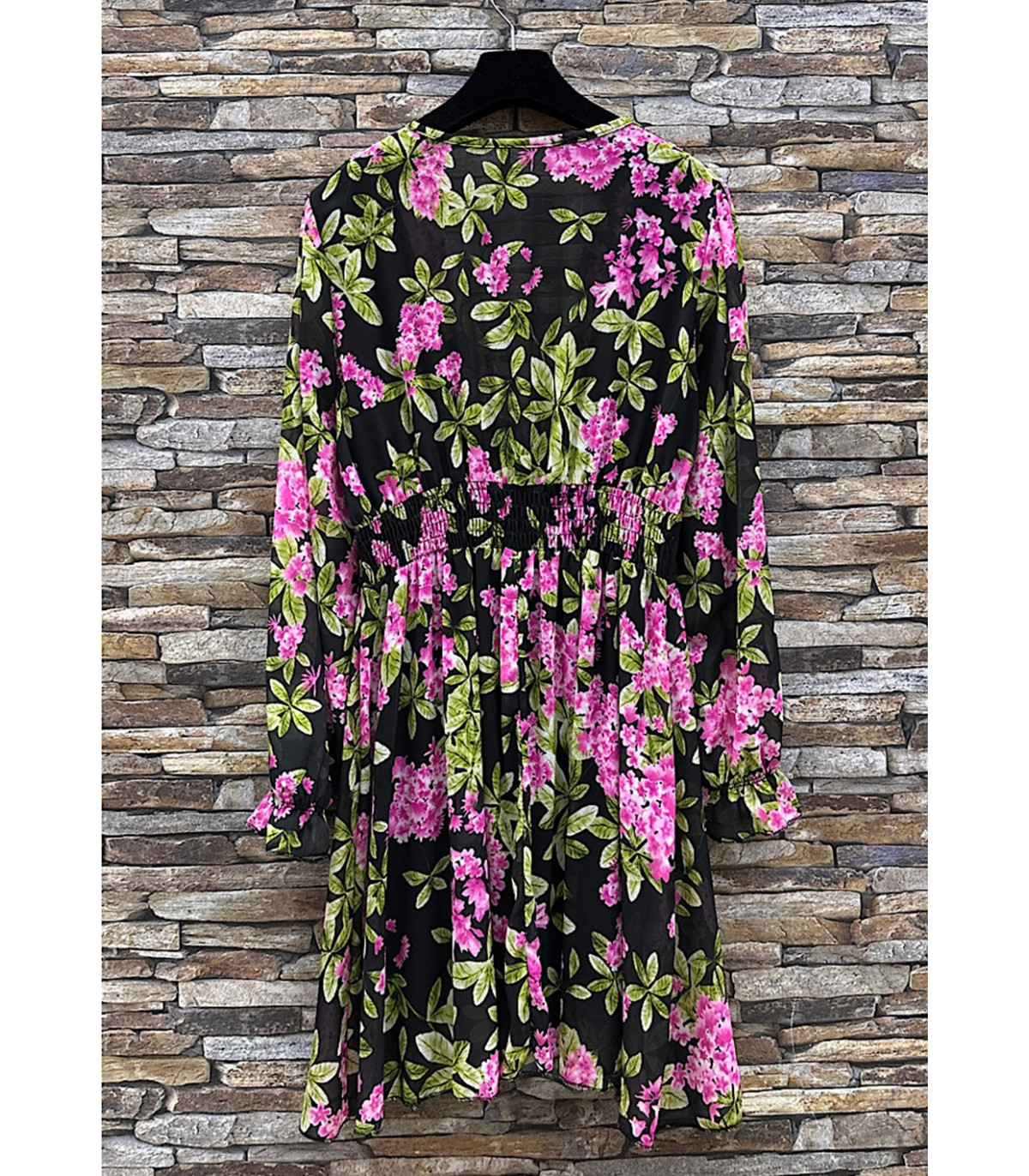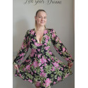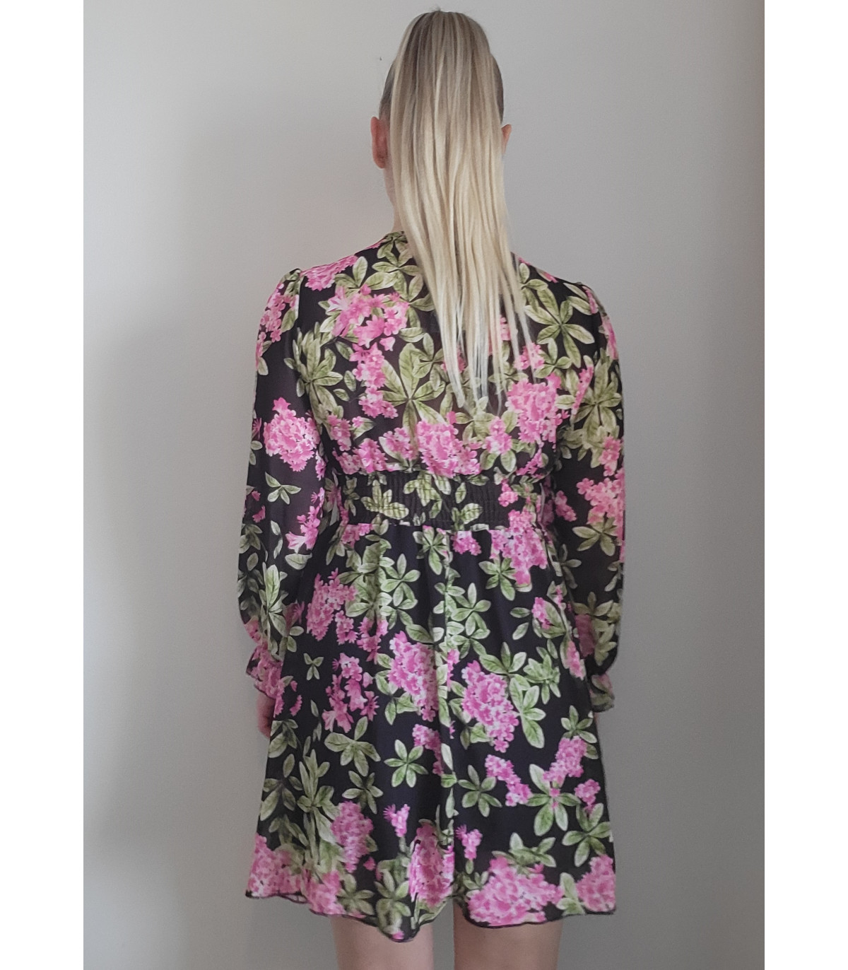 Elle Style Juliette musta kukkakuvioinen mekko helminapeilla