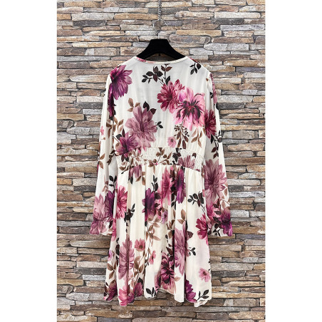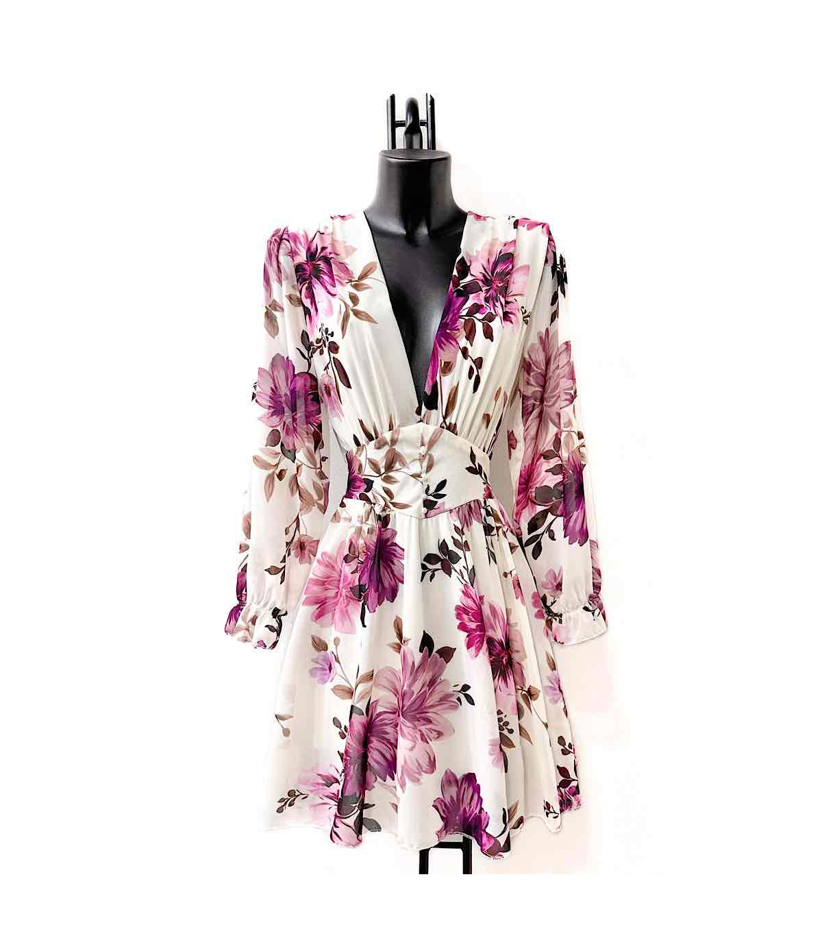 Elle Style Juliette valkoinen kukkakuvioinen mekko helminapeilla