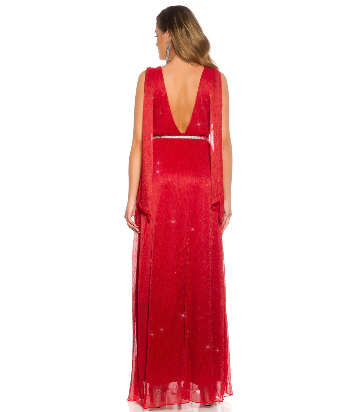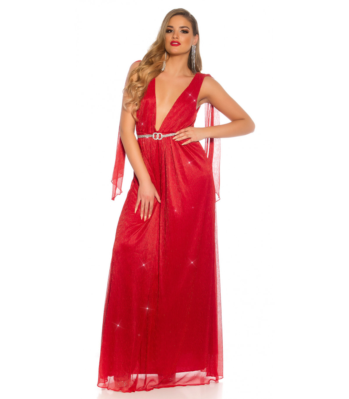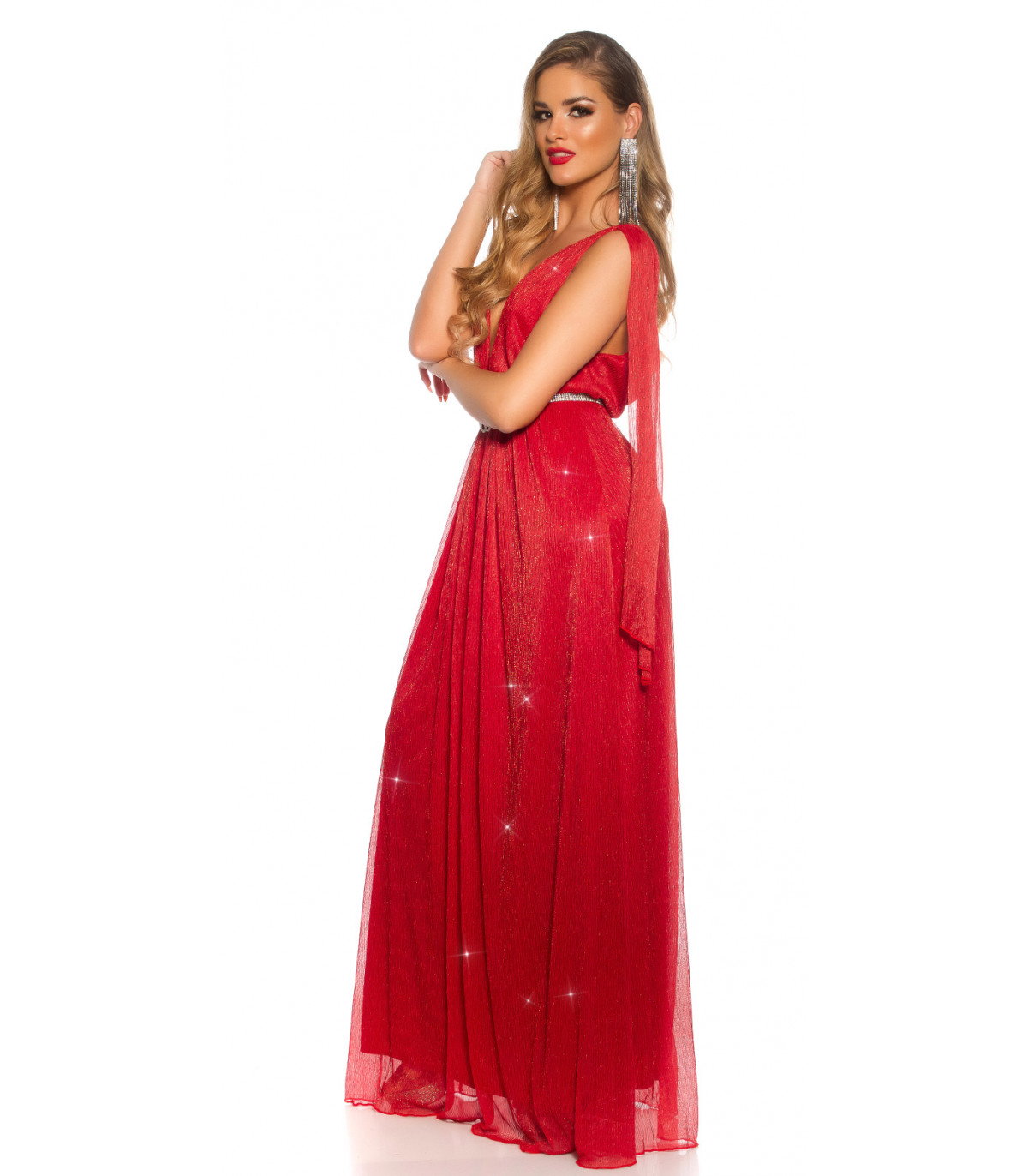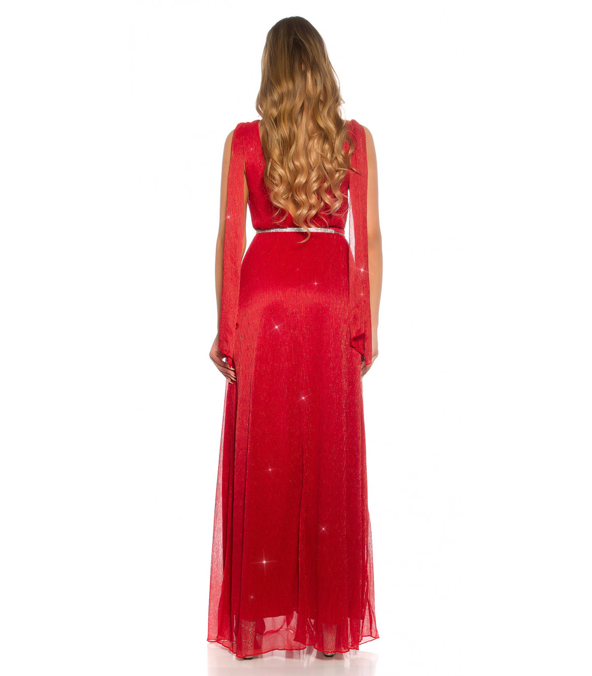 Koucla punainen iltapuku glitterillä ja liehuksilla