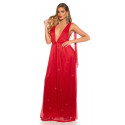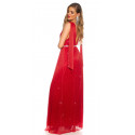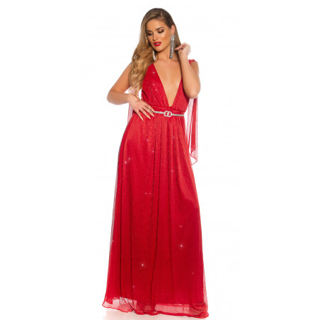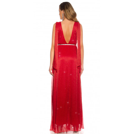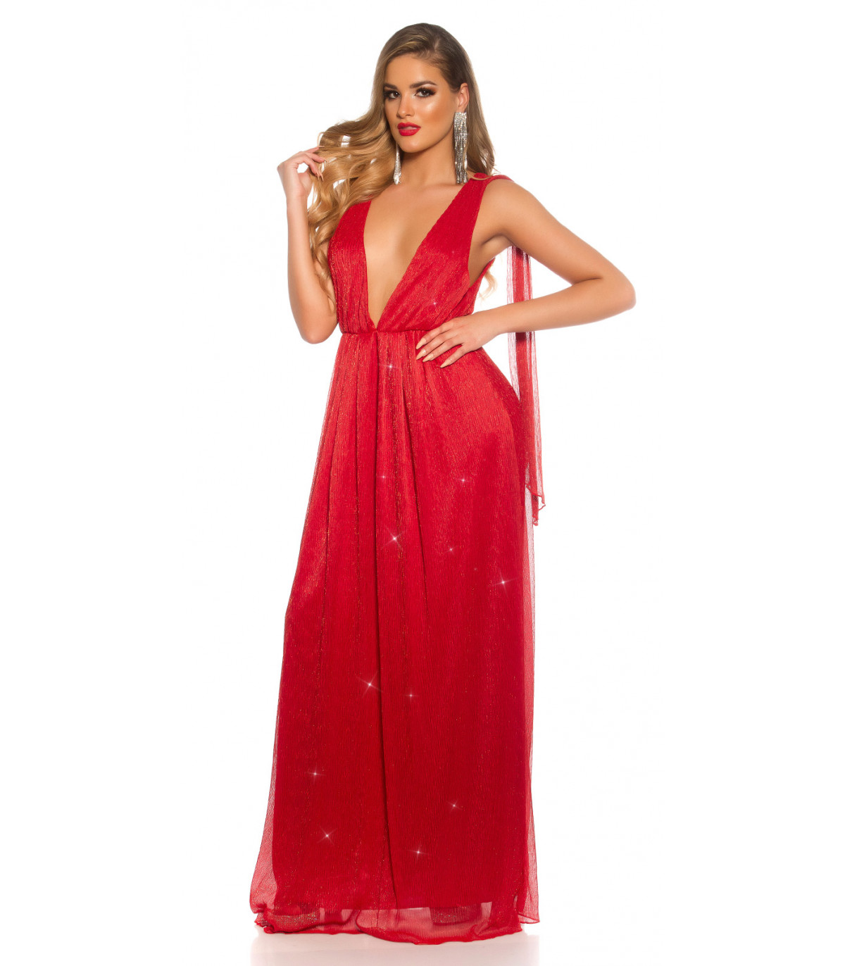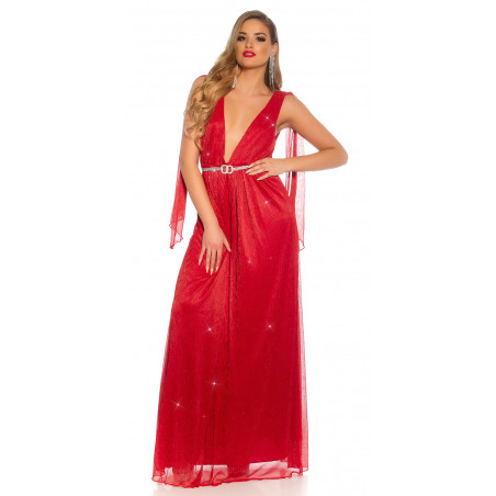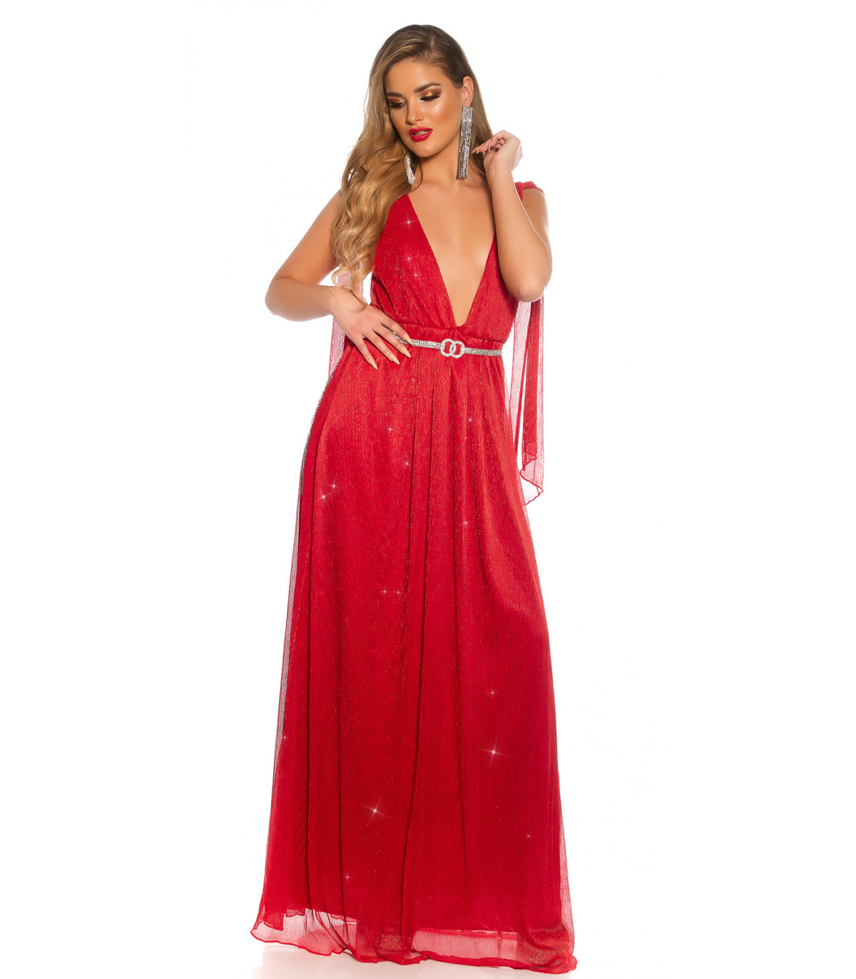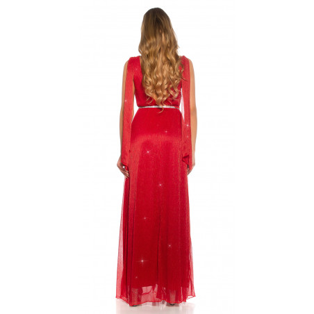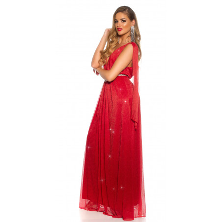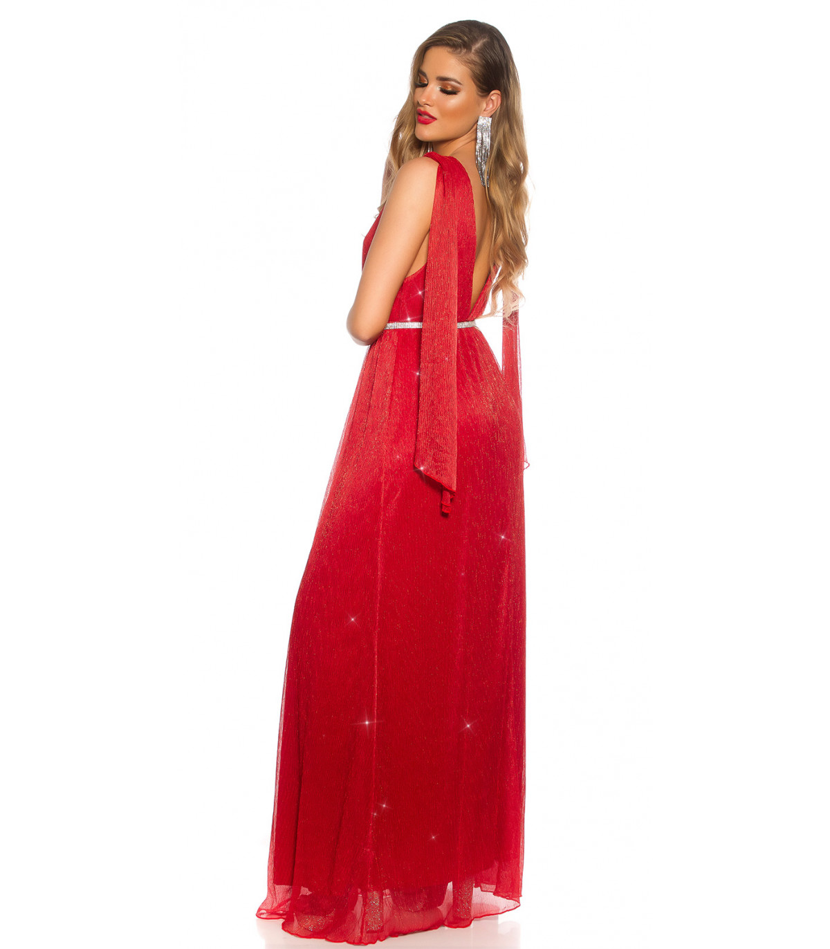 Koucla punainen iltapuku glitterillä ja liehuksilla