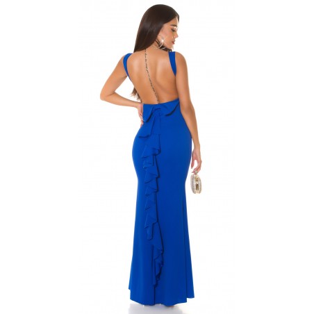 Koucla blå långkalasklänning med fluga