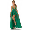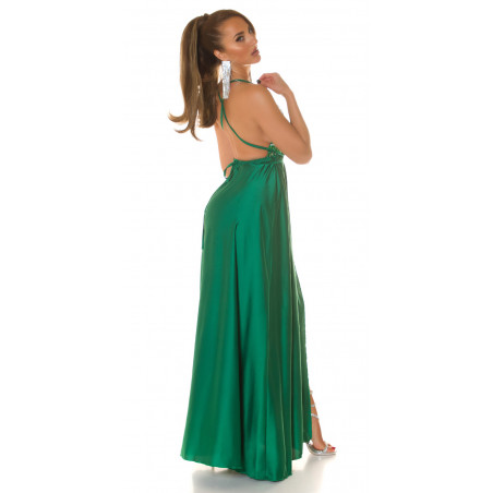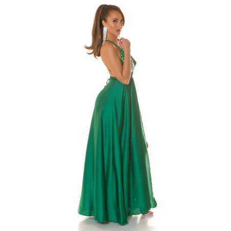 Koucla grön lång v-party klänning i satinlook med paljetter