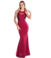 Koucla vinröd dekorativ broderad lång mesh partyklänning