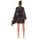Svart långärmad satinklänning med flammande. En elegant svart festklänning är perfekt för olika fester och evenemang. En vacker satinklänning med långa ärmar är ett elegant val för många olika tillfällen. En svart klänning är alltid ett säkert val och passar utmärkt till exempelvis julfester, cocktailpartyn och fina middagar. En satinklänning är också en sofistikerad dejtklänning.