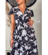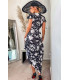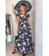 Svart och blommigt mönster en kortärmad v-wrap maxi klänning med bälte. Passar bäst för kvinnor som är ca 170 centimeter långa. Tillverkad i Europa.