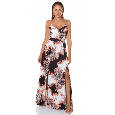 Koucla vitsvart mönstrad maxiklänning med slitsar