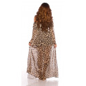 Långärmad maxiklänning med leopardtryck utanför axeln