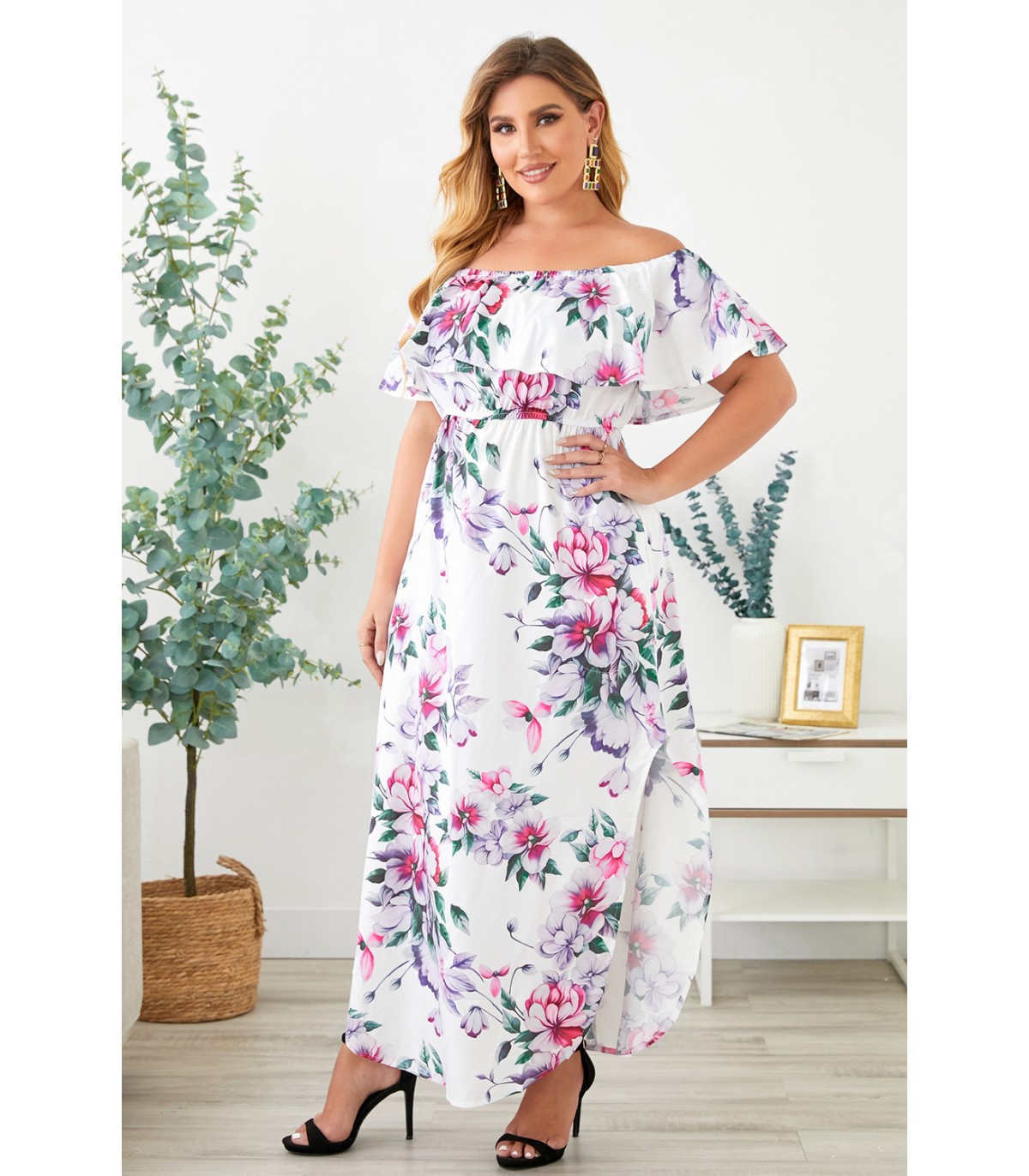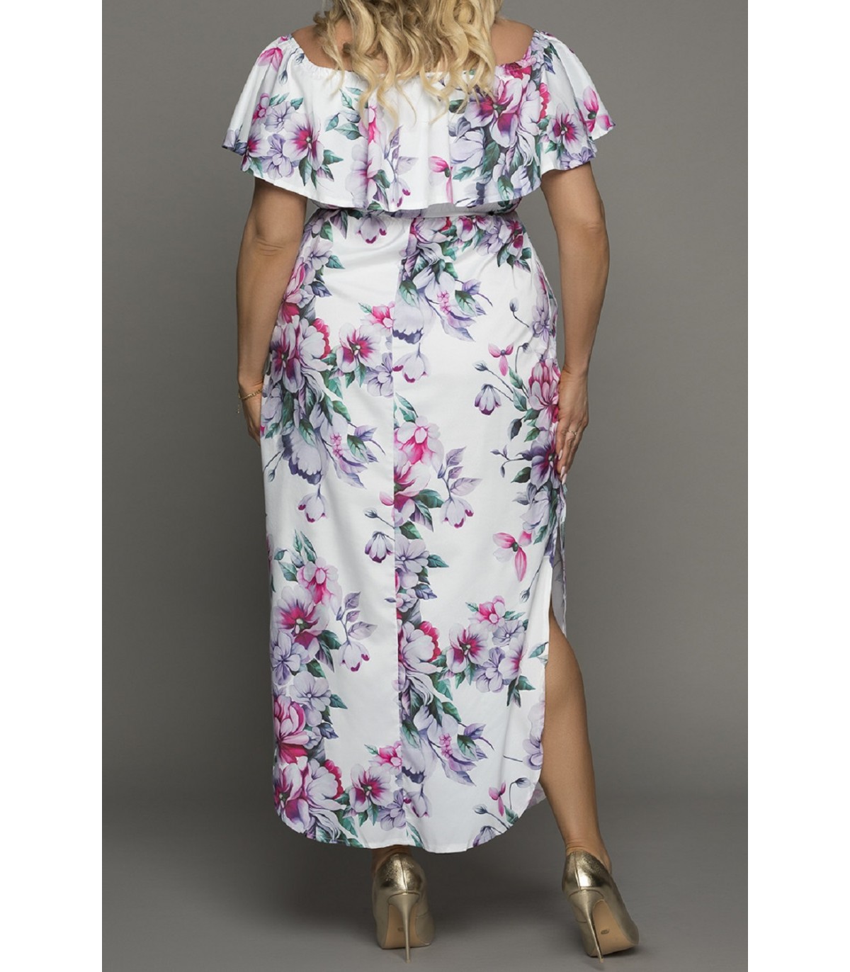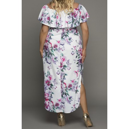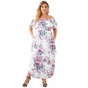Vitt blommönster off-shoulder maximakko (plus storlek)