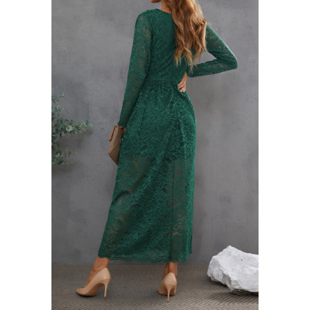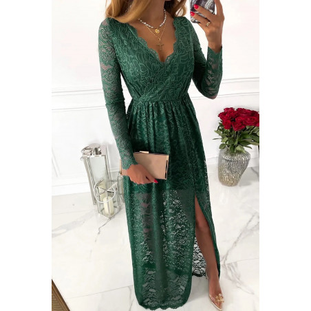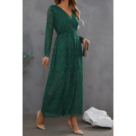 Grön långärmad lång v-spetsklänning med slits