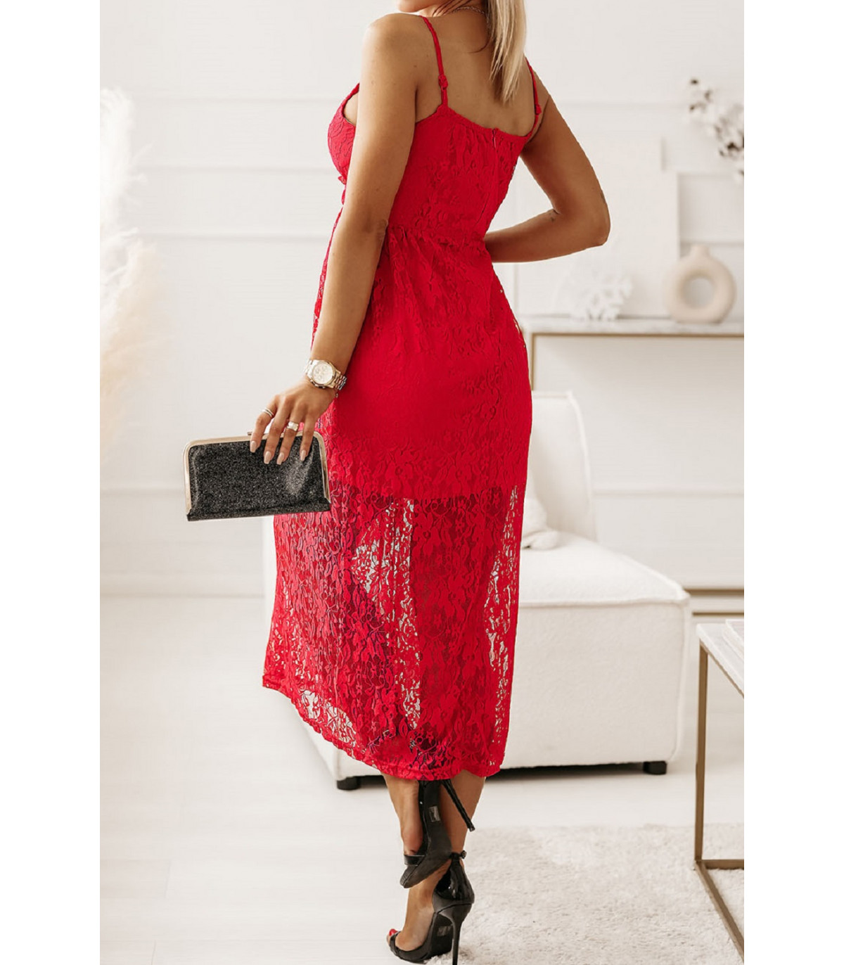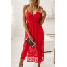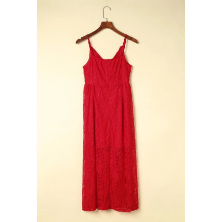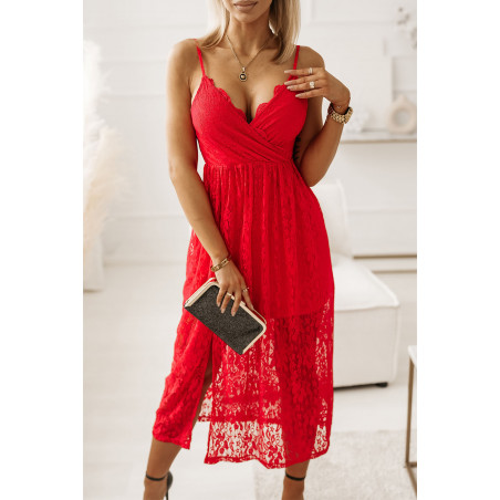 Röd lång wrap look v-spets klänning