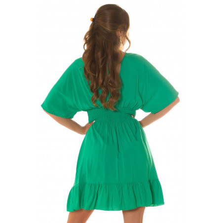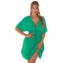 Grön kortärmad v-klänning. Under bröstet elastisk midja. Prova klänningen med midjebälte också.