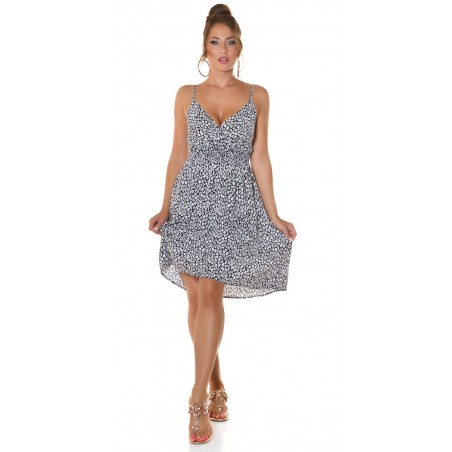 Svart dubbelaxlad blommig mönstrad v-klänning