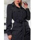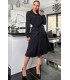 Svart långärmad midi-längd skjorta klänning med bälte och fickor. Den knappbara modellen är inte väl lämpad för stora lates. Tillverkad i Europa. Modellen använder storlek S.