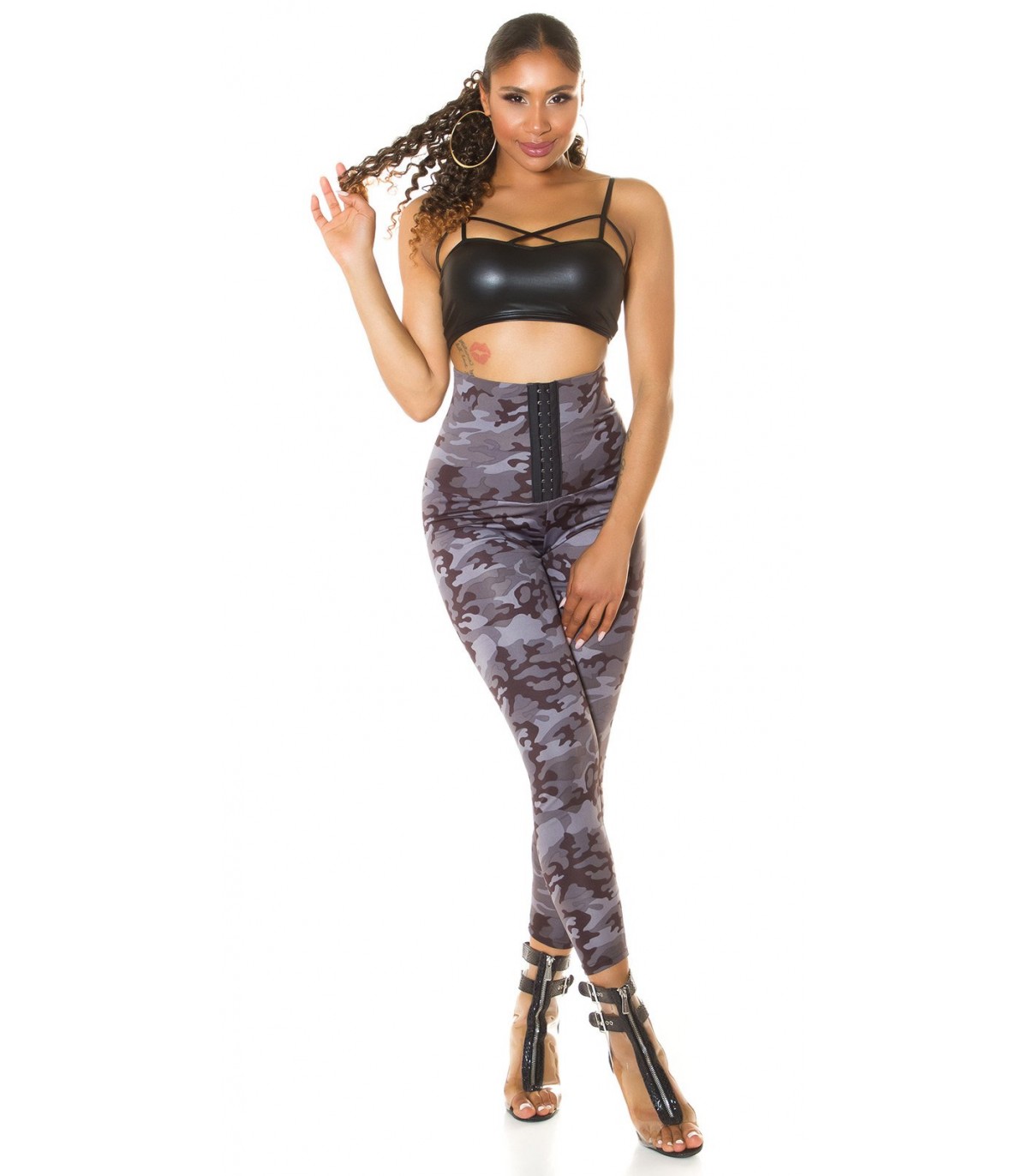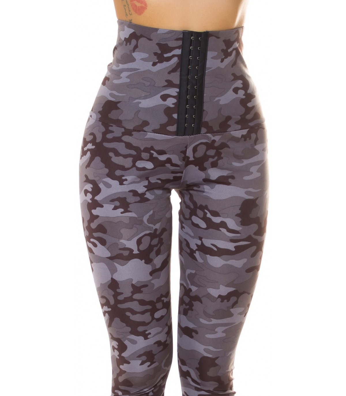 Kamouflage leggings med hög midja med krokar