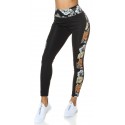 Mustat leggingsit kukkakuvioisilla raidoilla