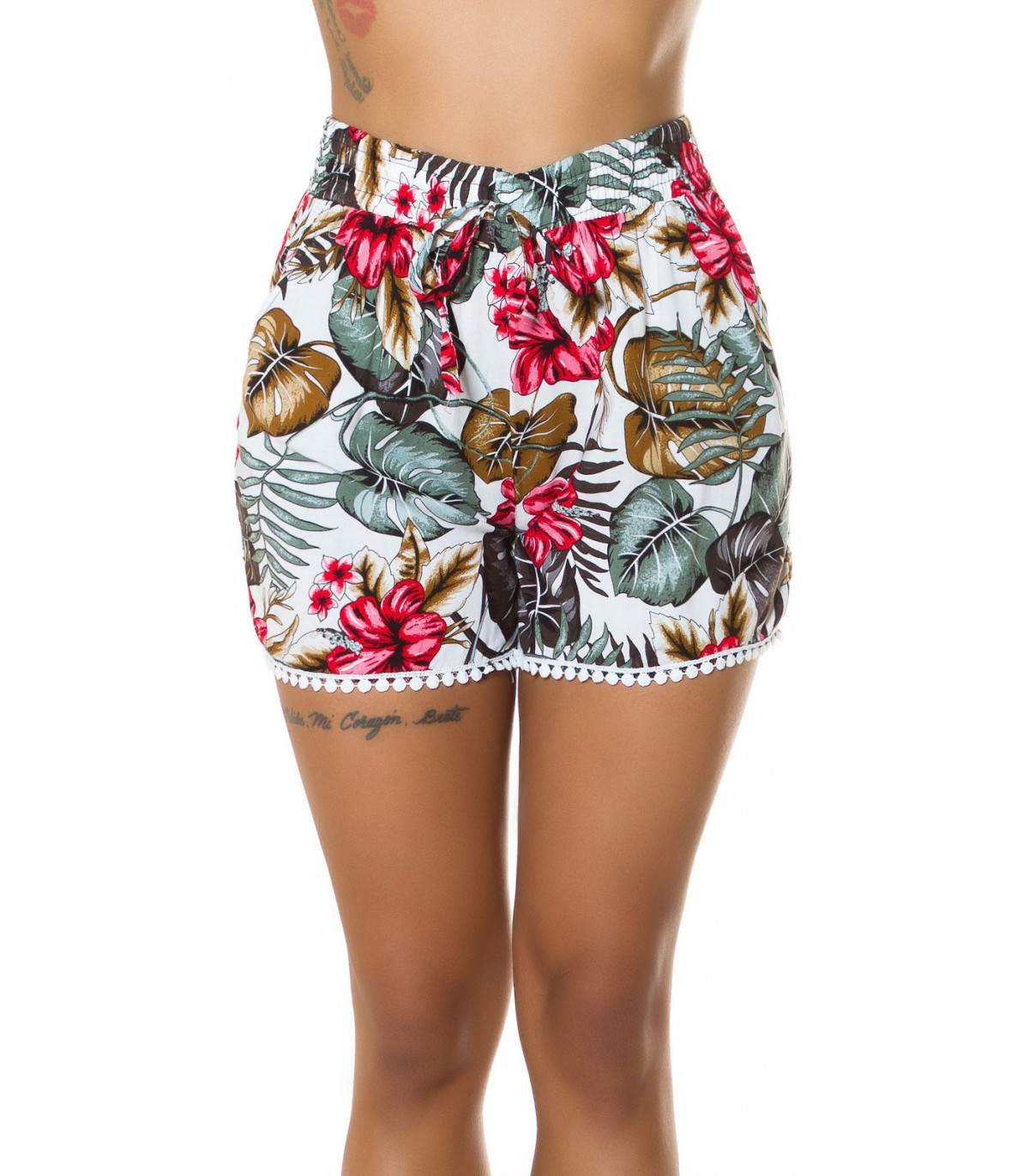 Vita bladmönstrade sommarshorts