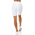 Vita cykelshorts med hög midja och veck som framhäver rumpan och bubblor som bleknar hudfel. Obs: Det finns ingen vaddering på shortsen! Om du undrar mellan två storlekar, välj den mindre. Under vita shorts rekommenderar vi att du bär ljusa eller röda trosor.
