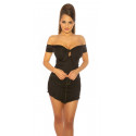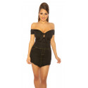 Svart off-shoulder kortärmad ribbad latinsk skjorta