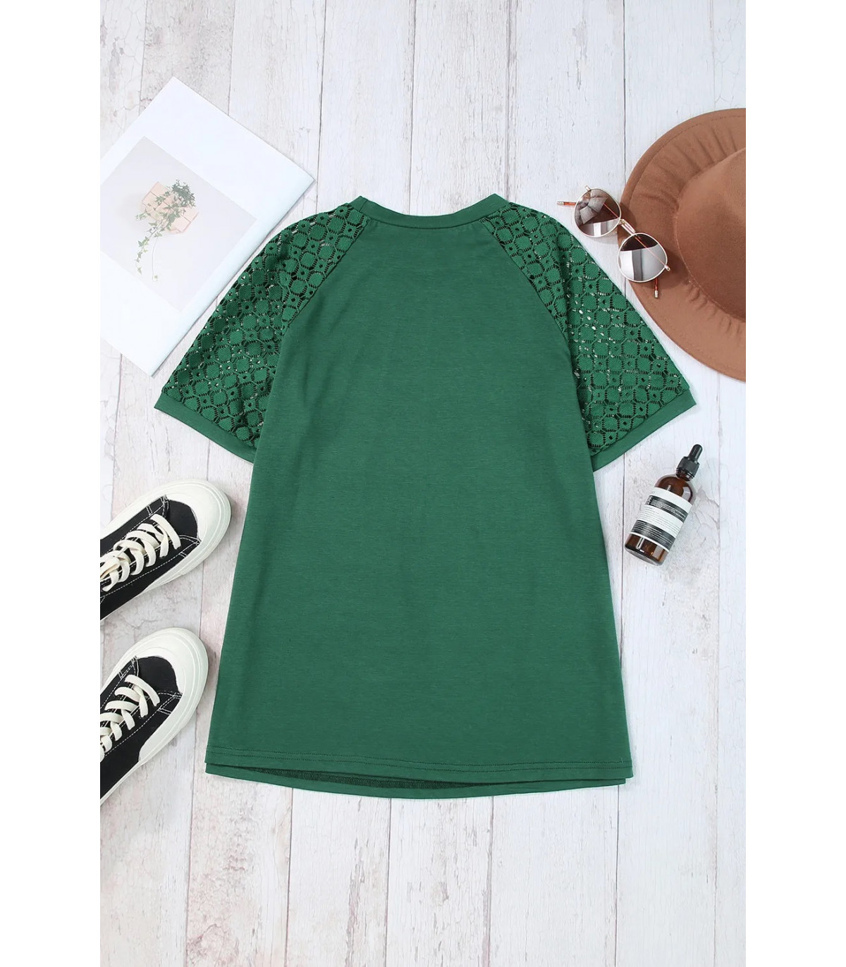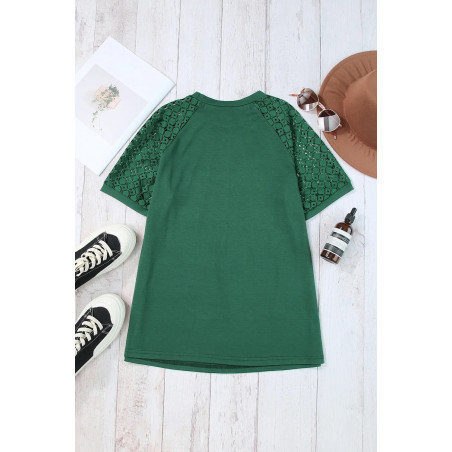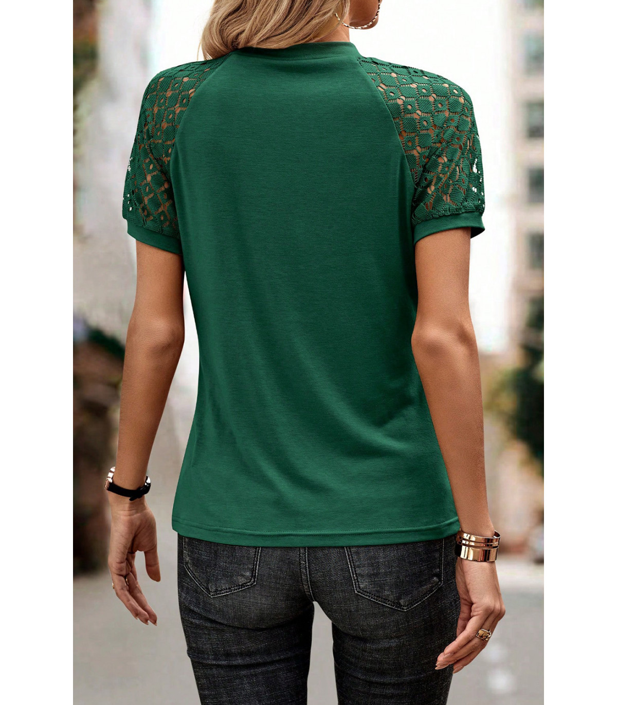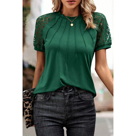 Plus de details Valittu koko loppu varastostaVihreä lyhythihainen t-paita pitsihihoilla ja poimuilla