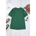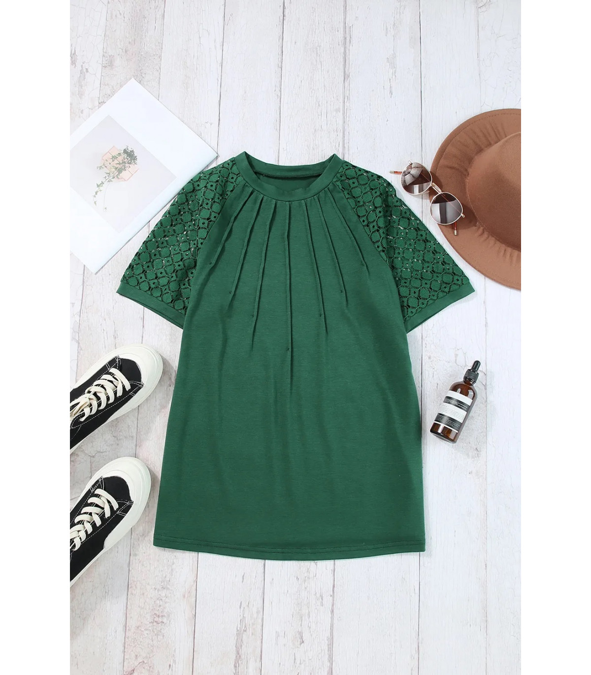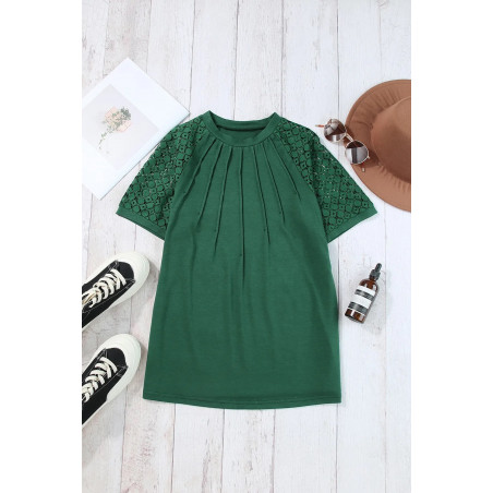 Vihreä lyhythihainen t-paita pitsihihoilla ja poimuilla