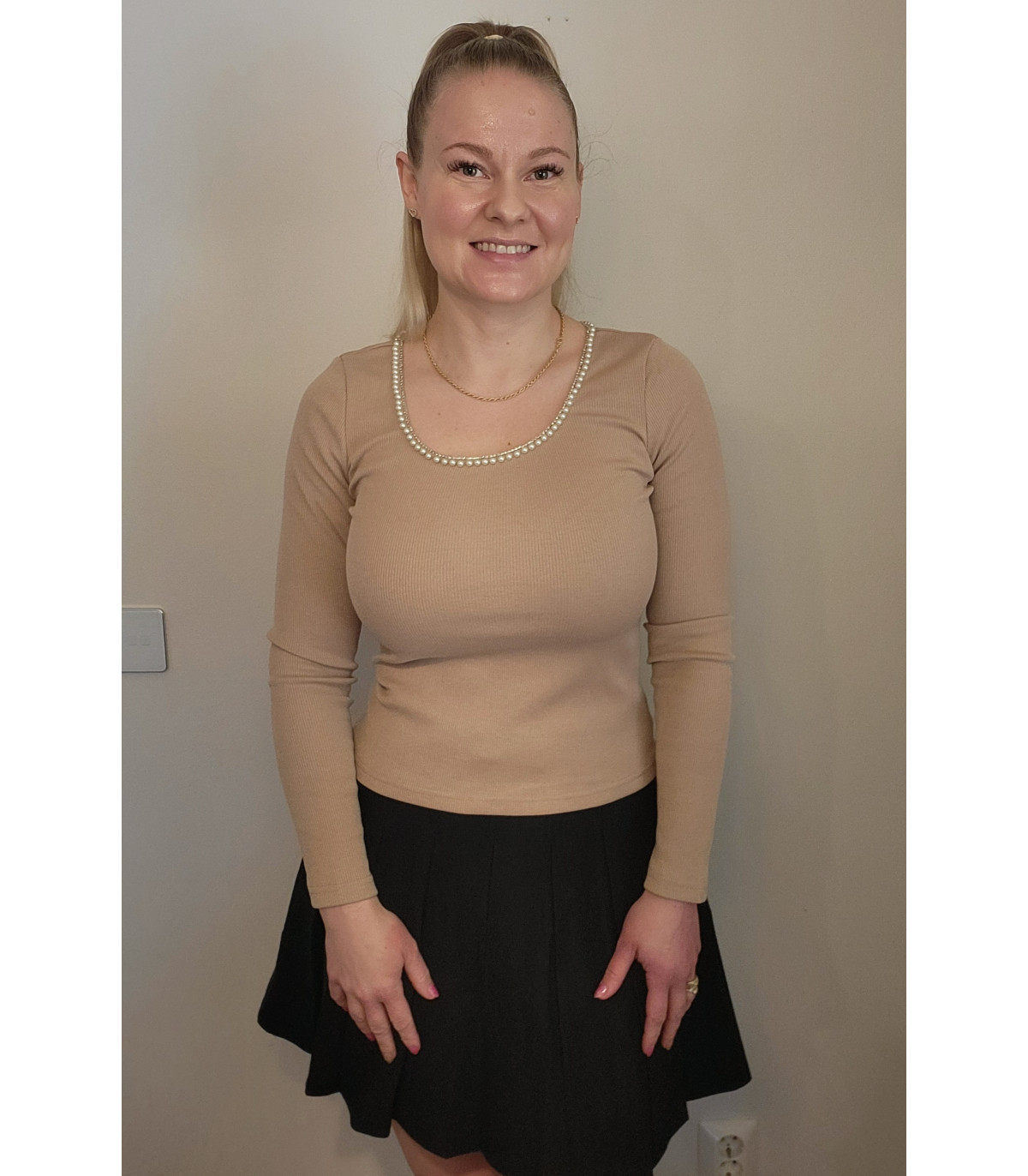 Ihana paita, väri beige/khaki. Napakka, ihonmyötäinen, aika lyhyt koossa XL (käytän kokoja 46-48 yleensä).
