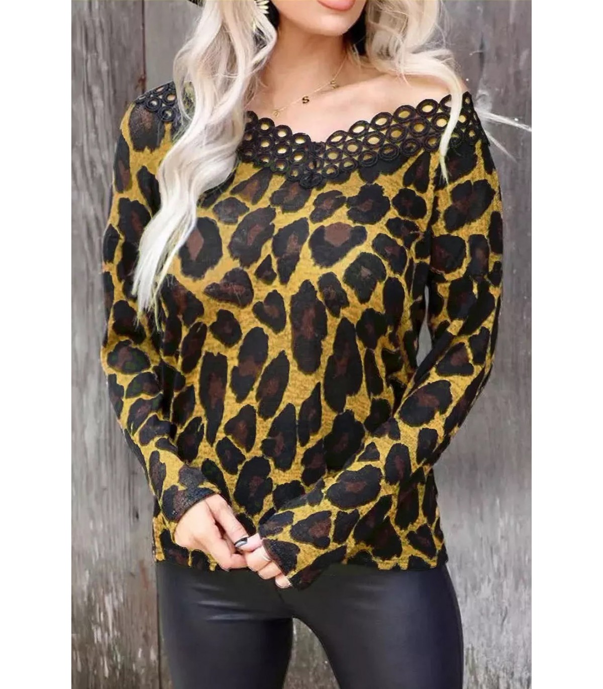 Leopardtryck långärmad skjorta med dekorativ krage