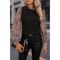Svart/leopardmönstrad blus med bagärm