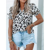 Vit kortärmad blus med leopardtryck