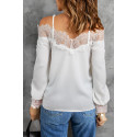 Vit långärmad spetstrimmad axelavslöjande löst sittande blus. Blusen böjer sig inte.
