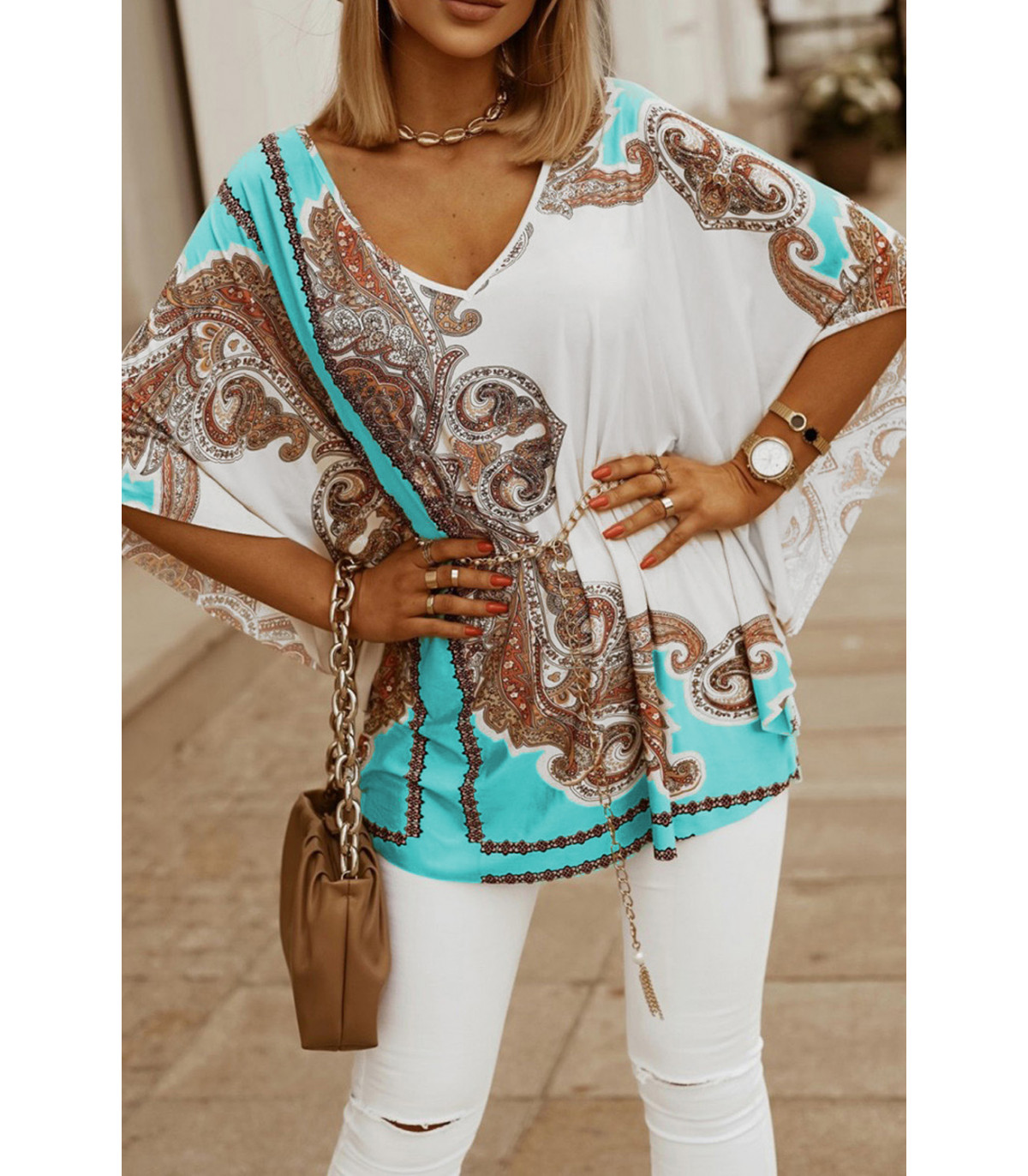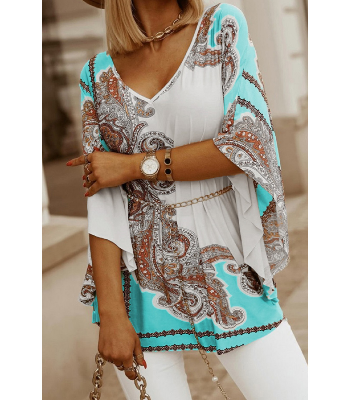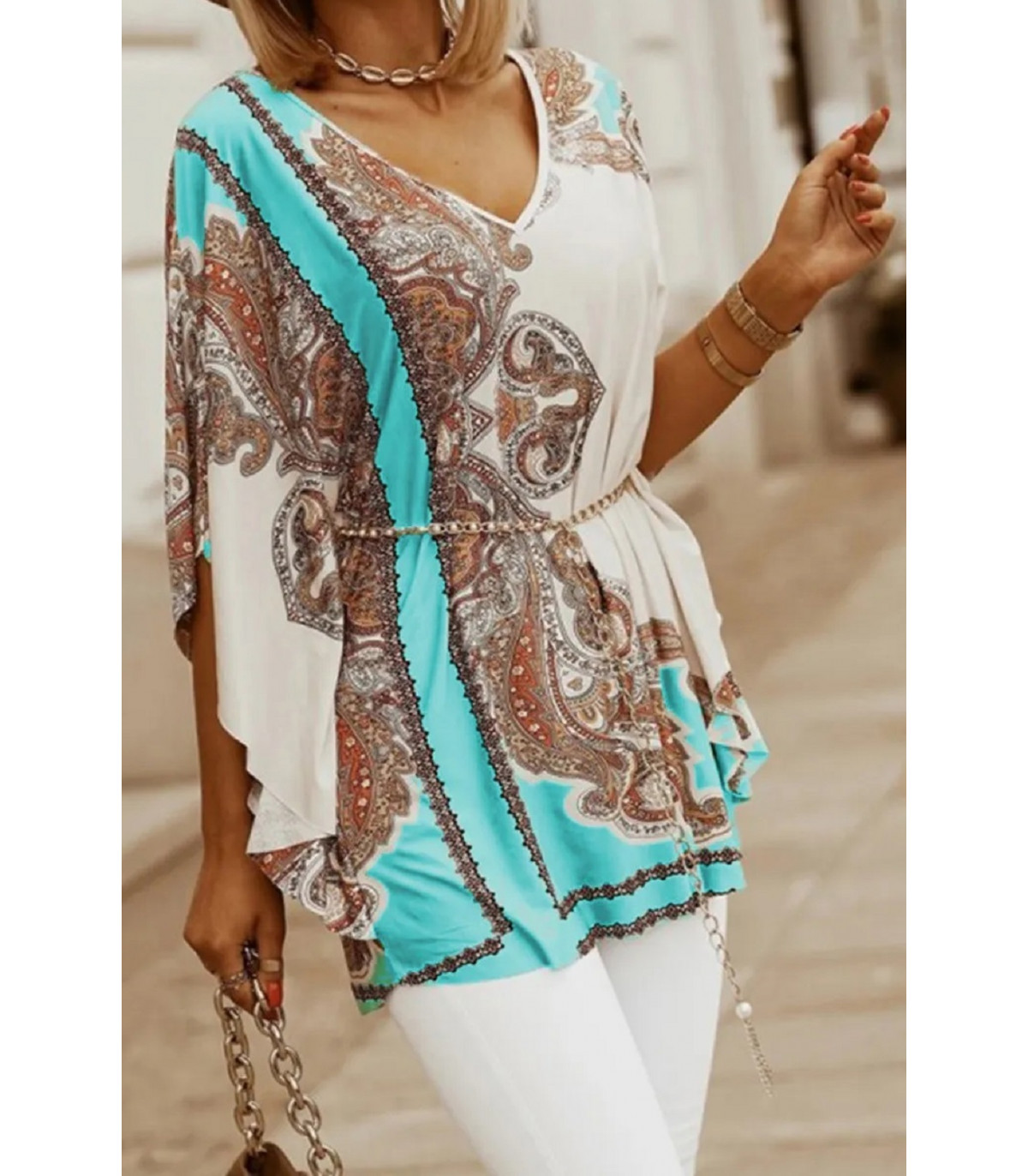 Fladdermusärm V-tunika med mönster
