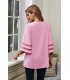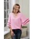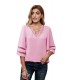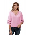 Rosa 3/4-ärm mesh och spets-cinched klocka ärm lös v-blus.