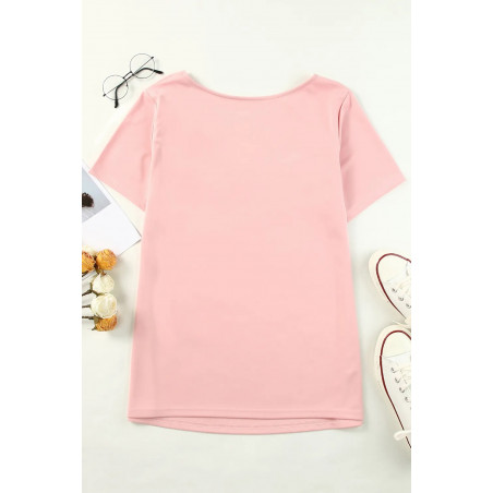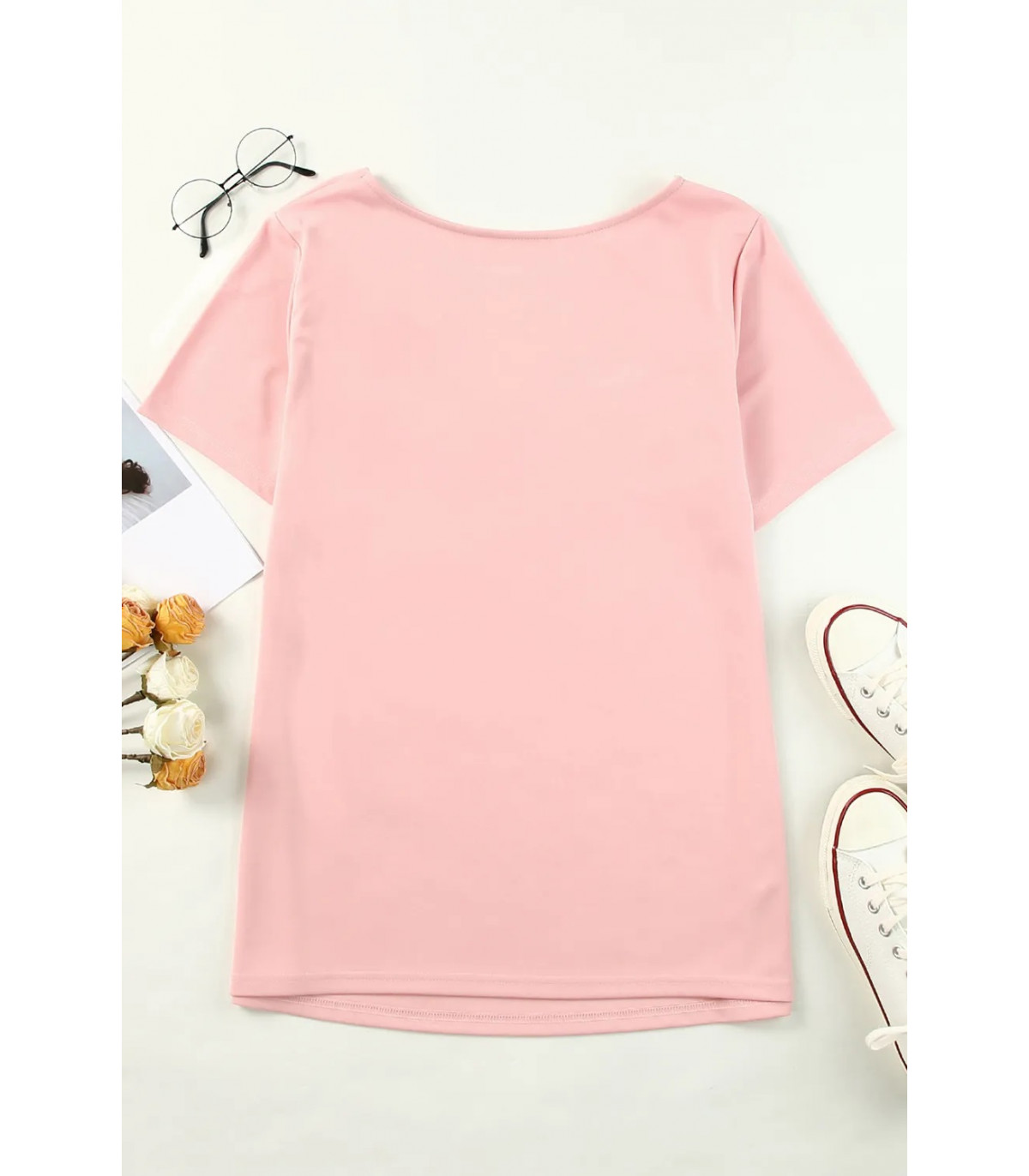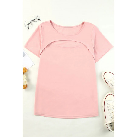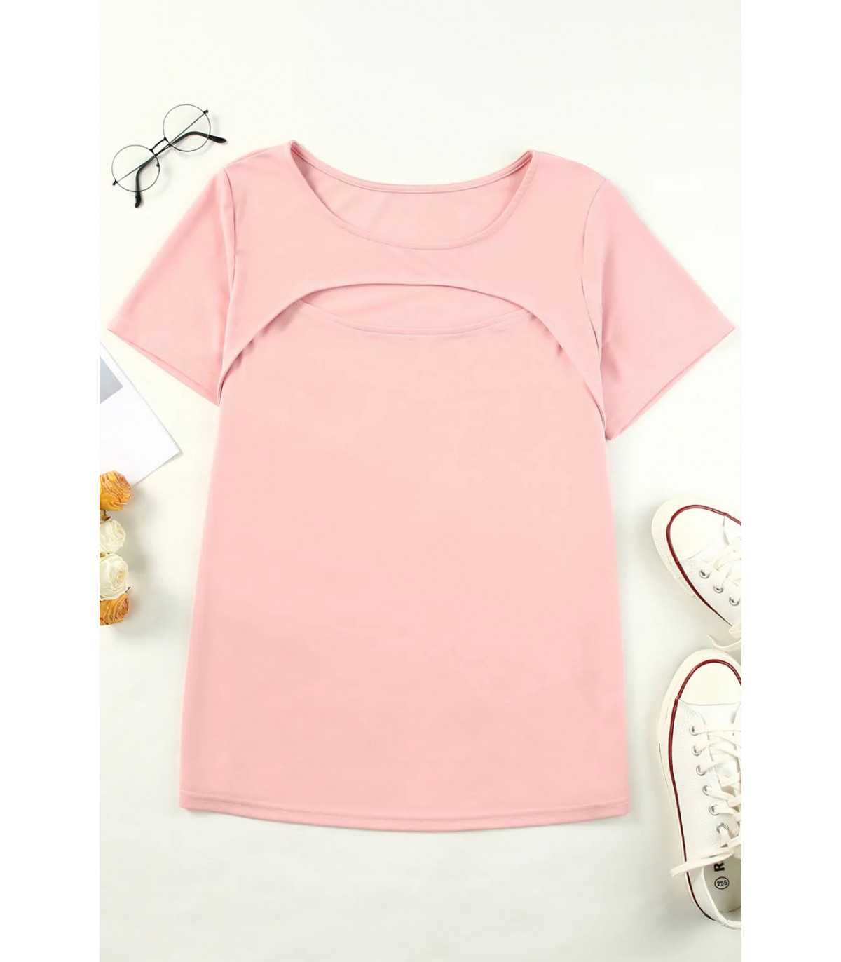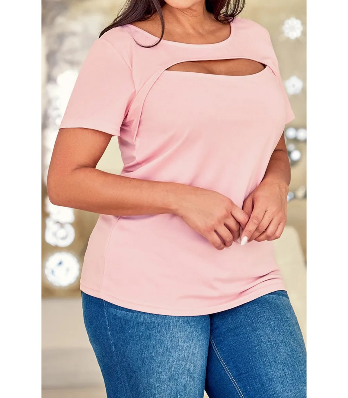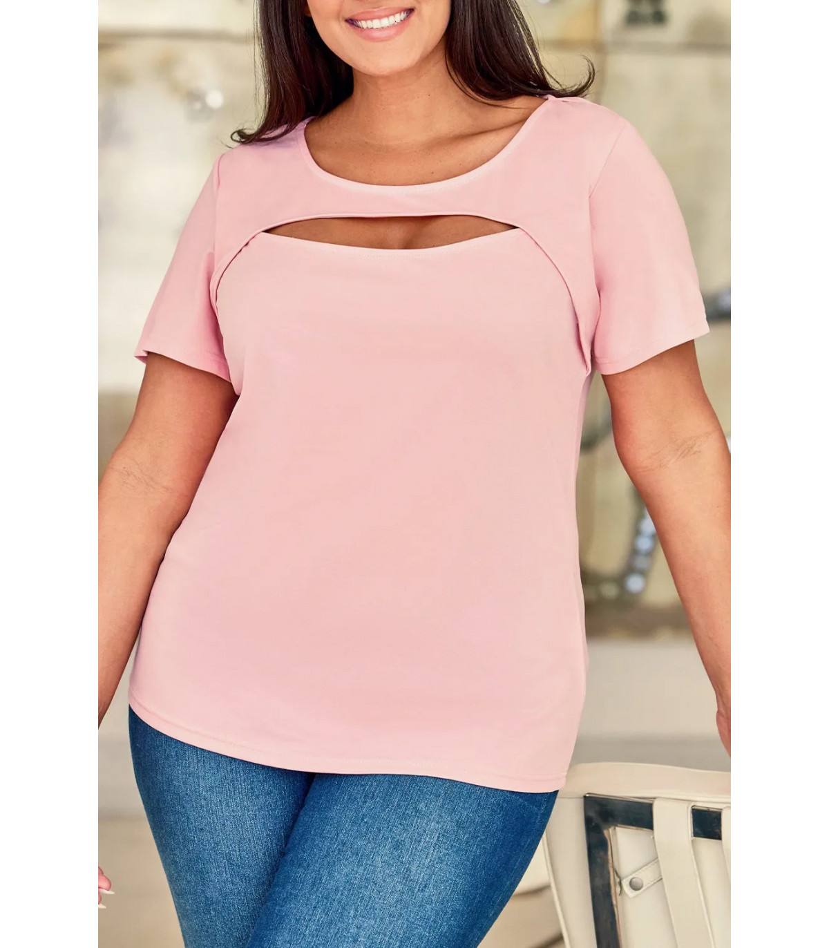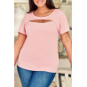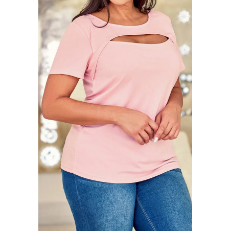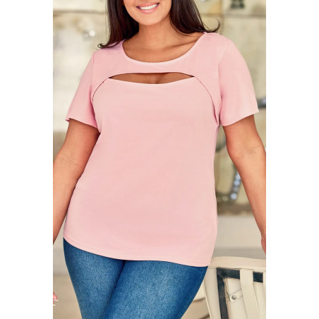 Vaaleanpunainen lyhythihainen t-paita kurkistusaukolla (plus size)