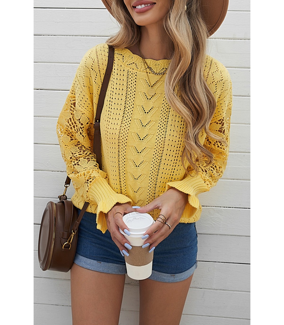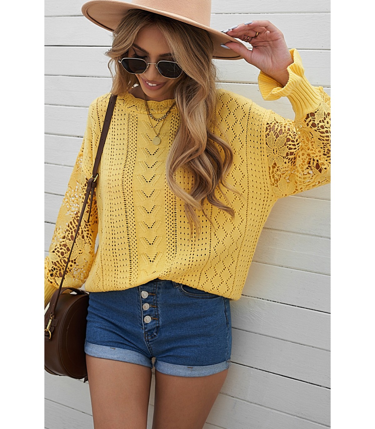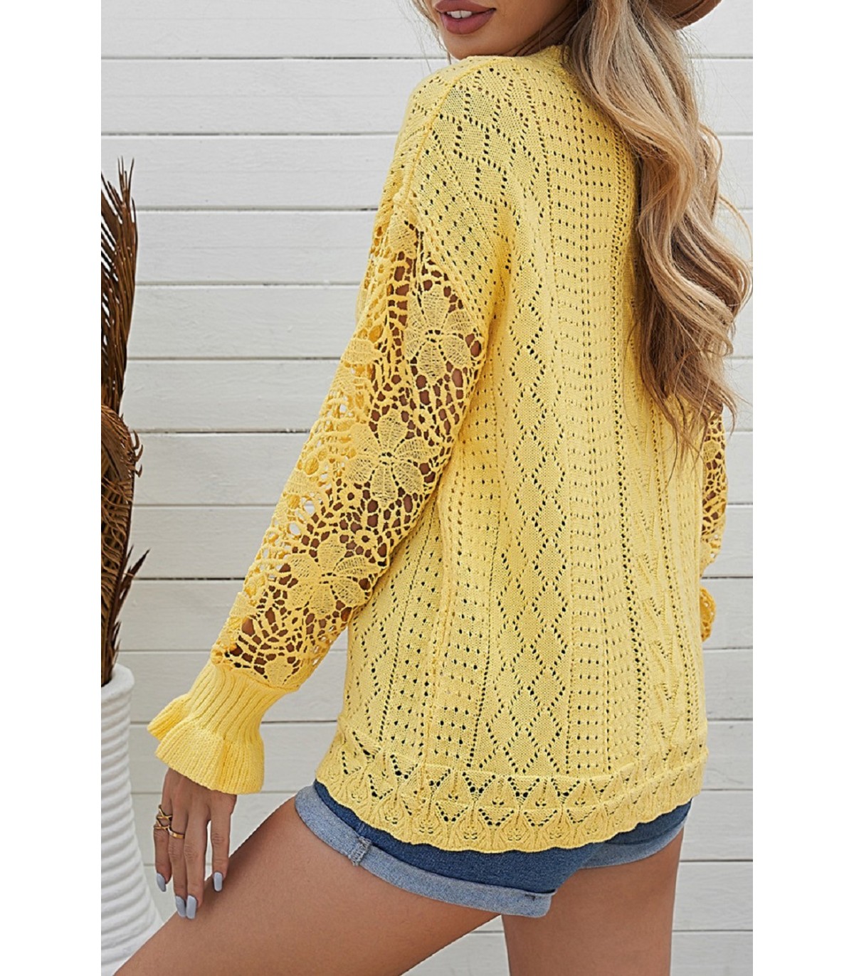 Gul tröja med virkade ärmar