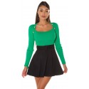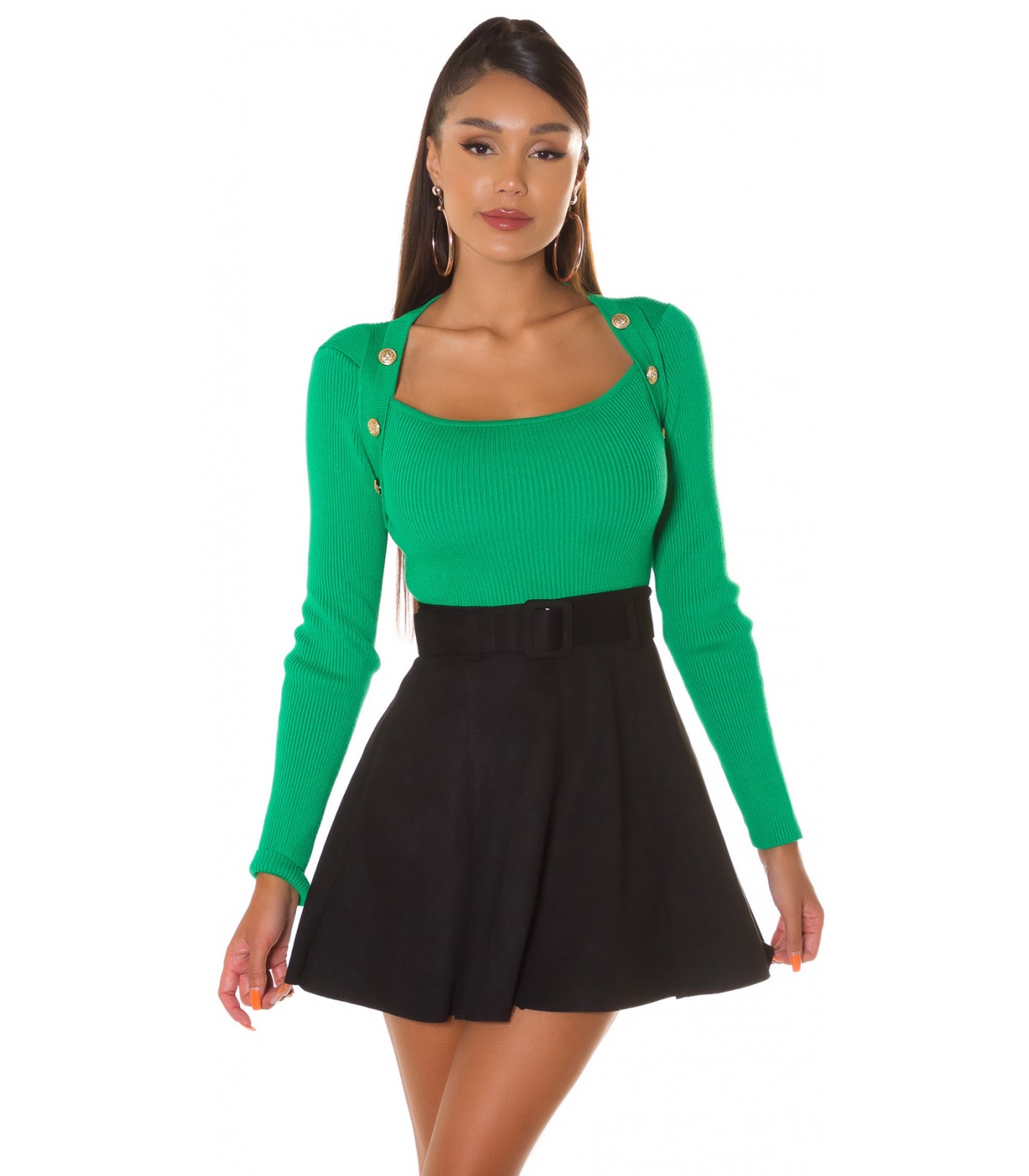 Grön långärmad 2in1 ribbstickad med knappprydnader.