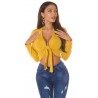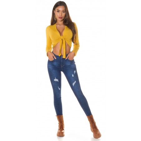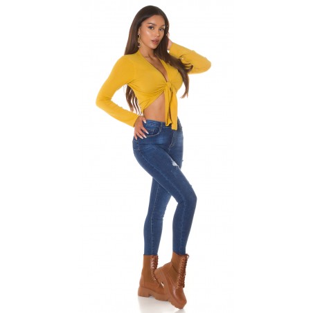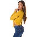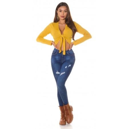 Senapsgul långärmad slips korta stickade kläder