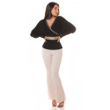 Svart dekorativ fladdermusärm wrap look V-stickad