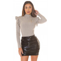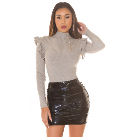 Taupe/cappuccino ribbineule röyhelöillä ja napeilla