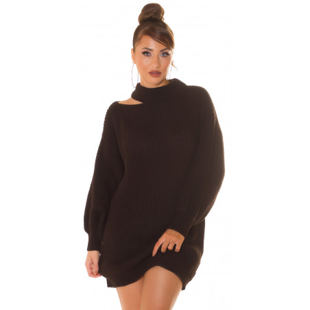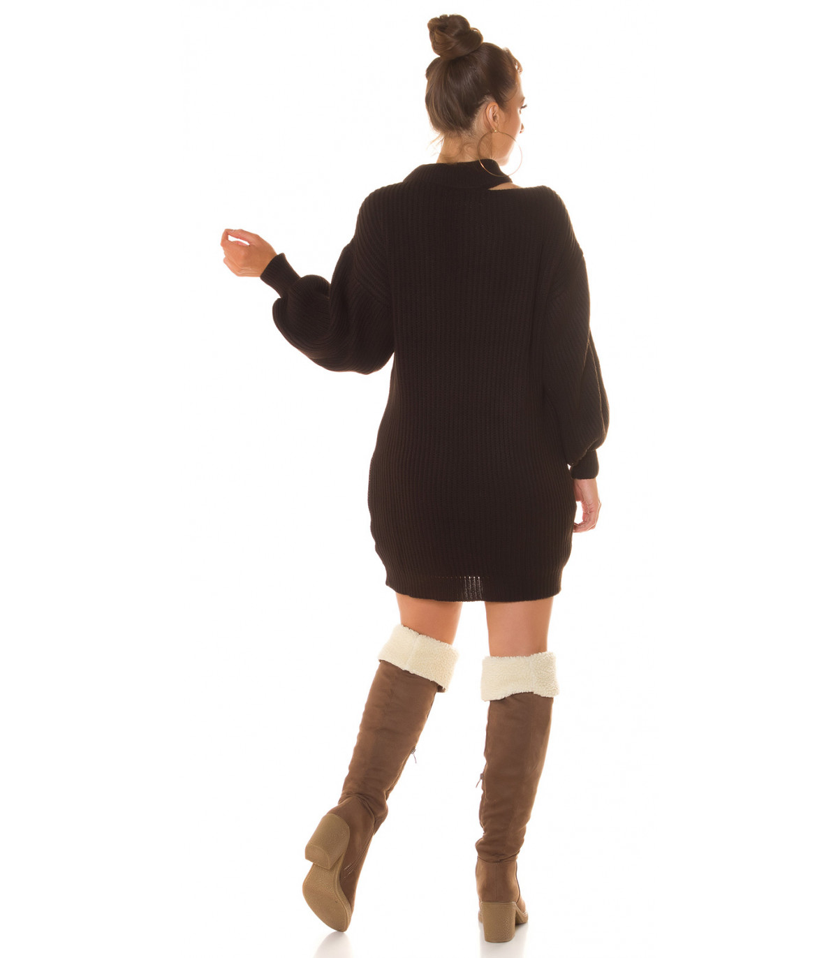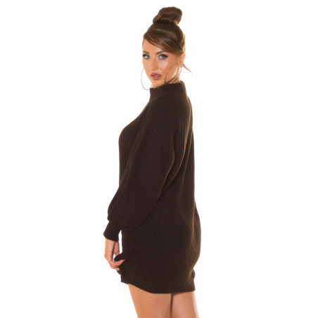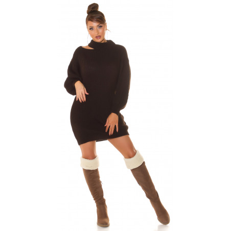 Brun plyschklänning i ull med slits runt halsen